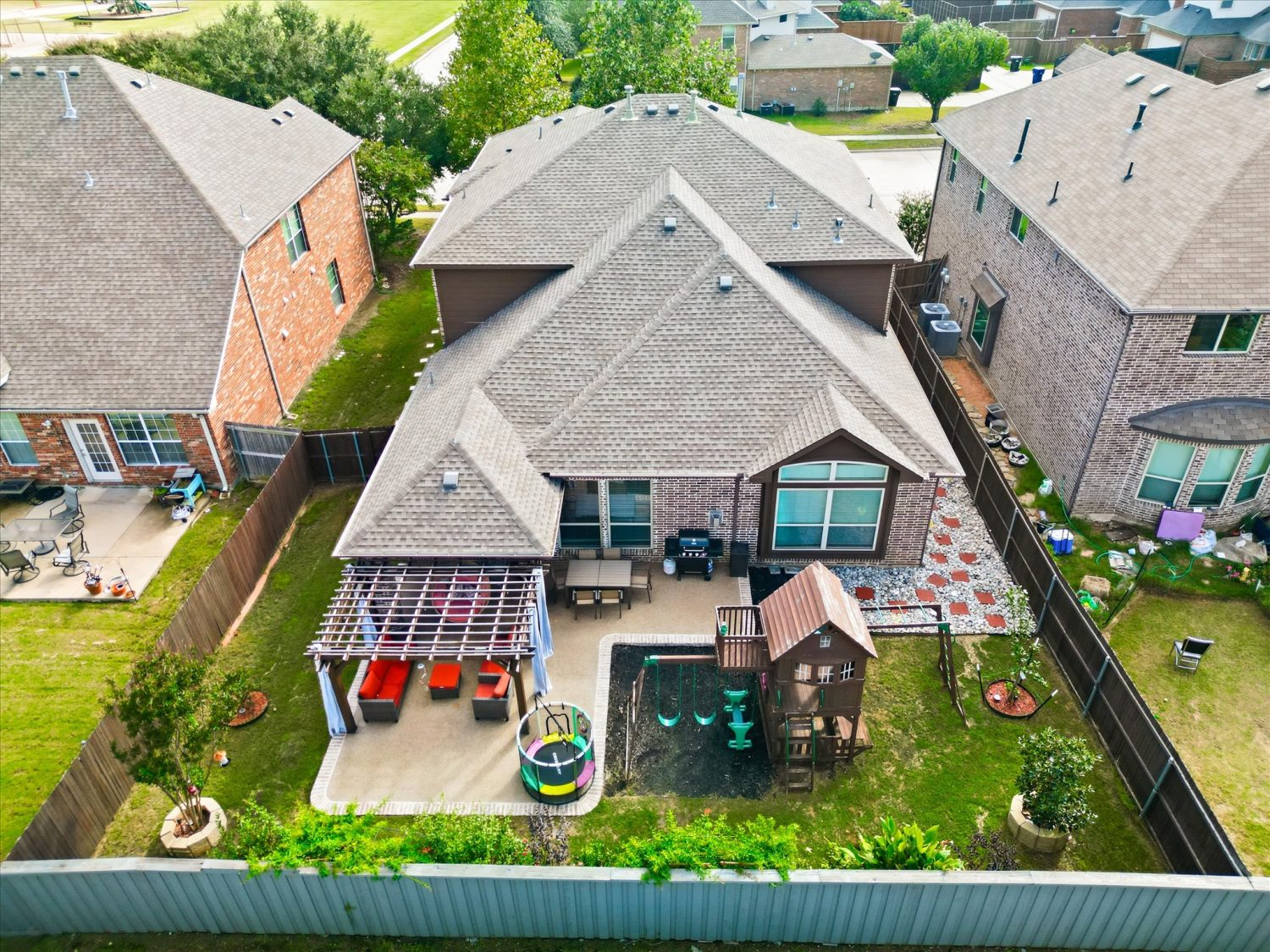 Soak up the sunshine from the comforts of this spectacular backyard! Fully fenced and landscaped, there’s something for everyone! Let the little ones enjoy the backyard playground while you relax and enjoy happy hour beverages on the furnished patio.
