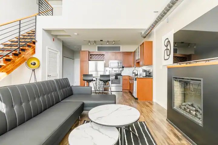 Enjoy a stylish experience at this centrally-located Penthouse style apartment. Comes with many amenities and free parking. Contemporary style furnishing.