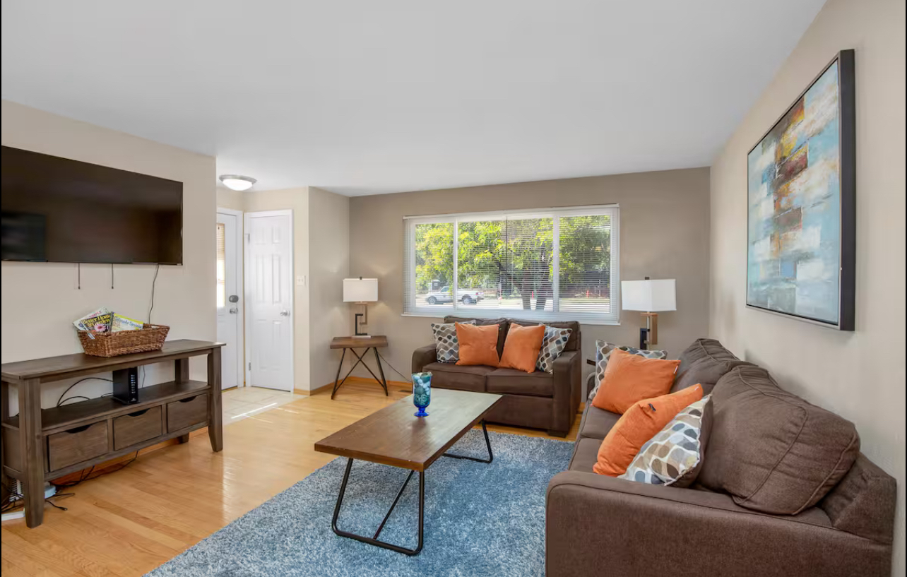4 Bdrms- Upstairs 2 King Beds & 1 Queen Bed (Downstairs Bedroom has a King Bed & Queen Sleeper couch), Living Room has Queen Sleeper Couch. Perfect home for a 1 night stay for 1 person or a week+ long vacation for a family. With state of the art Appliances, Fenced Backyard, WiFi, 5 TVs, AC. Pet Friendly (up to 2 Dogs only) with prior approval and pet fee paid. NO Shoes. No Smoking or Vaping (cannabis, tobacco, or anything else) in the house, can smoke in back Colorado Springs STR Permit #0866