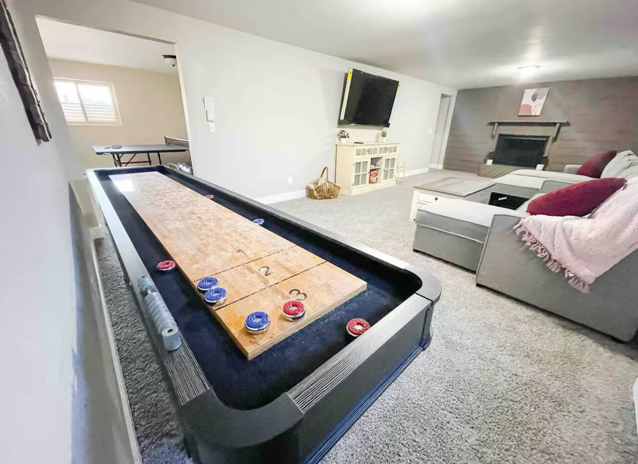 Game Room with Ping Pong table, Shuffle board and board games for the family to enjoy.
