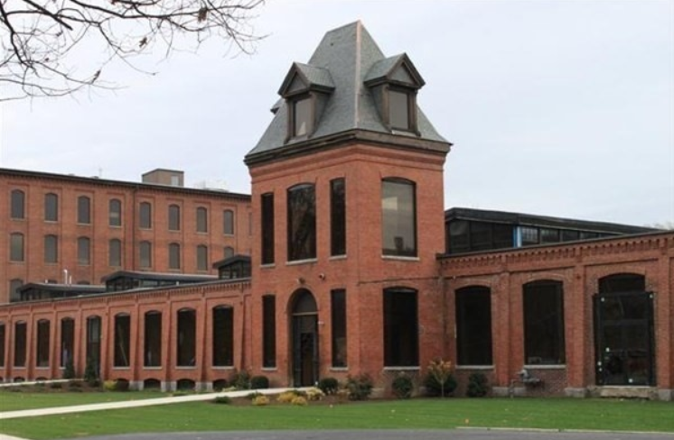 Mill-style loft apartments with exposed brick and beams, spiral staircases, fireplaces, clerestory windows, high ceilings, and wood floors. On-site amenities include basketball court, fitness center, community room, theatre room, putting green, outdoor picnic area with grill and car wash station.