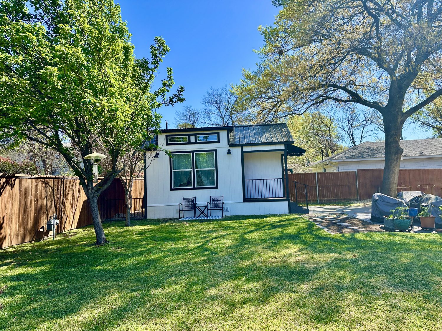Experience a charming Italian-inspired tiny home retreat in the heart of Dallas, perfect for mid-term stays (30+ days). Ideal for digital nomads, traveling professionals, or couples, this cozy space blends comfort, convenience, and peaceful outdoor living.