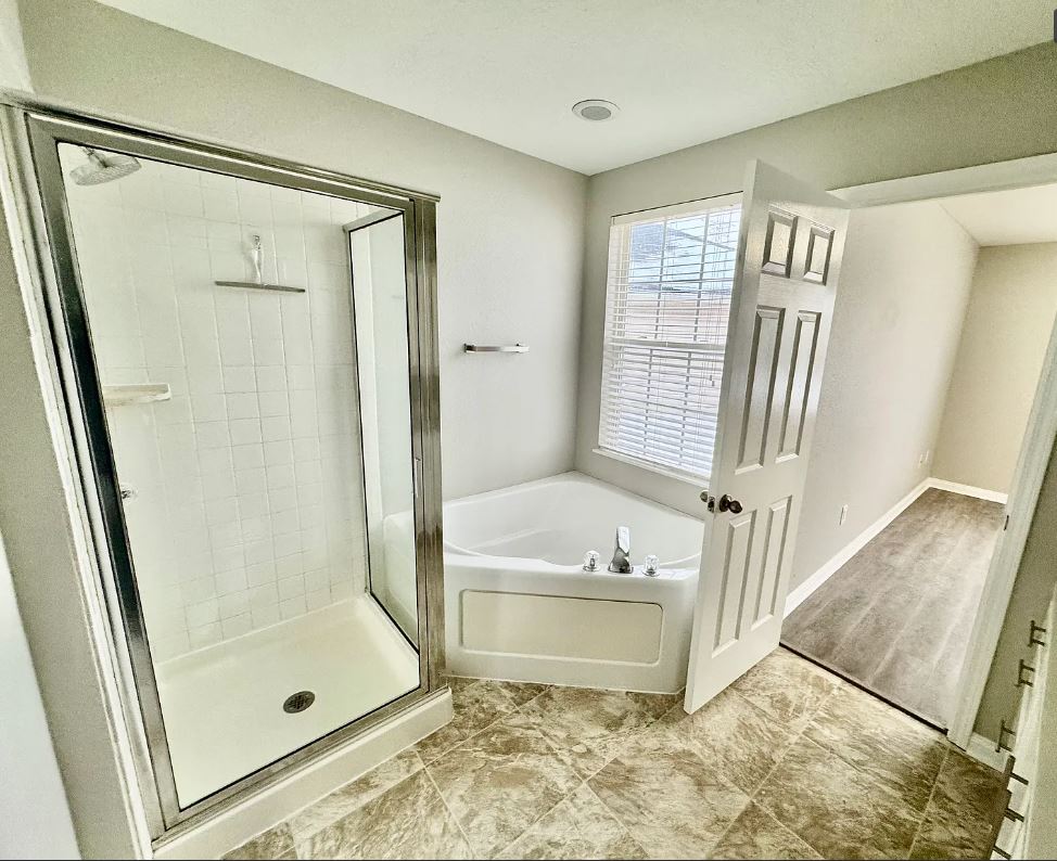 Both bathrooms have been thoughtfully remodeled with contemporary touches, creating a relaxing, spa-like atmosphere. The spacious master suite offers a private retreat with a garden tub, walk-in shower, and plenty of room to unwind.