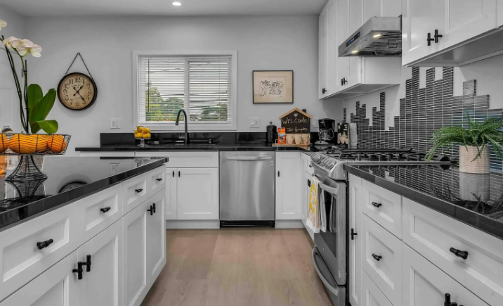 Large chef's kitchen w large island with seating for 6. Also business travelers we have a large office space that can also convert into a bedroom with a built-in Murphy bed w Queen memory foam bed.