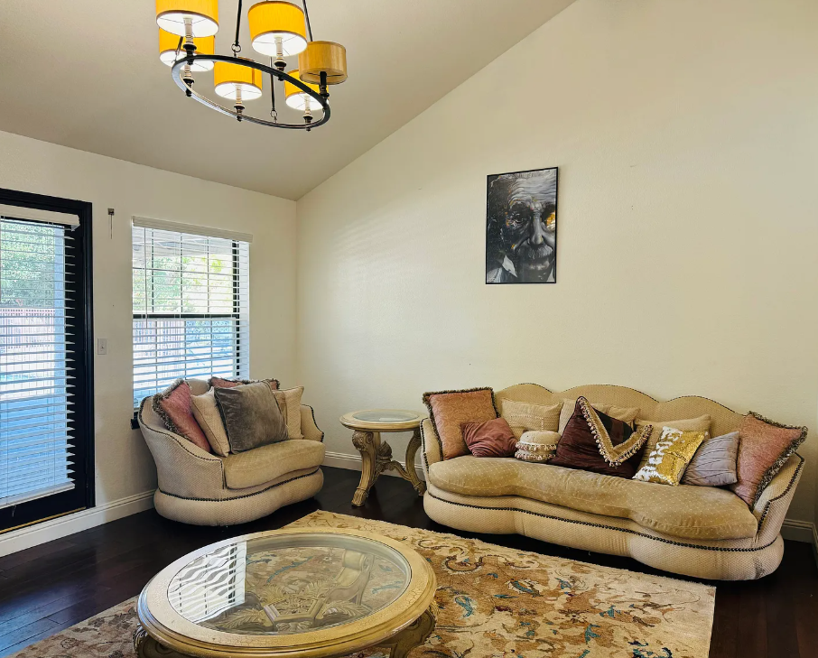 Experience luxury, comfort, and convenience in this fully furnished 3,000 sq. ft. home located in the prestigious Bakersfield Country Club area. This spacious 4-bedroom, 2.5-bath residence features a beautifully designed master suite with a Cal King bed, an ensuite bathroom with a separate shower and soaking tub, a walk-in closet, and direct access to the backyard. Two additional bedrooms each offer a twin and double bed with full closets, while the fourth bedroom includes a queen bed—providing ample space for families and guests. The home boasts three large living areas, an expansive kitchen with a dedicated dining space, and two study/work zones perfect for remote work or student use. Modern conveniences include an in-home washer and dryer, an attached 2-car garage, two AC units, two water heaters, whole-house water filtration, and solar panels that significantly reduce electricity costs. The outdoor space is a true oasis with a large swimming pool, an oversized backyard filled with fruit trees—including pomegranate, orange, lemon, guava, grapefruit, and grapes—and an olive tree in the front yard. With a driveway that can fit up to seven vehicles, this property offers exceptional comfort, energy efficiency, and plenty of room to entertain, making it an ideal choice for long-term renters seeking a premium home in one of Bakersfield’s most desirable neighborhoods.