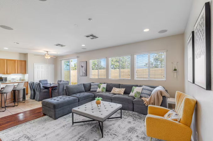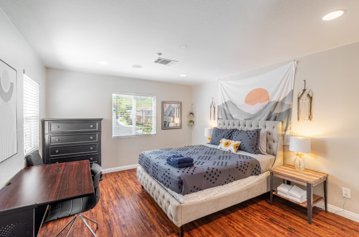 Discover a boho-chic haven in this spacious 5-bedroom, 3-bath home for up to 16+ guests. Enjoy multiple living rooms, dedicated work desks, and breezy, eclectic style throughout. Ideal for families, groups, and remote work retreats—book now for an unforgettable getaway!