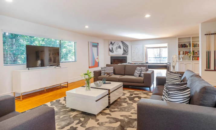 Located in one of the most desirable and upscale areas of Los Angeles, this fully-furnished home is a perfect getaway spot for families, travelers or business professionals. Located in the heart of West LA, the location is close by to the beach, UCLA, The Getty Center, Beverly Hills, Malibu and the Marina and much more. This modern, urban home in the Brentwood area has 5 spacious bedrooms, wooden-cabinet kitchen, spacious dining area, modern living area, vintage piano, outdoor area, and jazucci room.