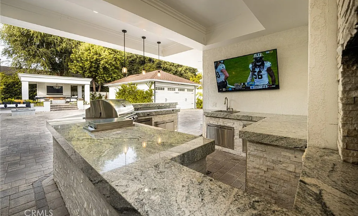 Beautiful Remodeled 4 Bedroom House in the Italian Revival estate in Pasadena's prestigious Bungalow Heaven Landmark District. This home exudes timeless elegance, with meticulously curated high-end finishes throughout, offering a seamless blend of classic charm and modern sophistication. The inviting living room, bathed in natural light from expansive windows and anchored by a cozy fireplace, is accessed through a picturesque front porch perfect for leisurely moments of relaxation. Adjacent to this elegant space is the formal dining room, featuring French doors that open to a tranquil side porch, creating an ideal flow for both intimate gatherings and grand entertaining. The gourmet kitchen is a chef's dream, showcasing top-of-the-line appliances, custom cabinetry, and luxurious porcelain countertops. Every detail has been thoughtfully designed for both beauty and function. The crowning jewel of this home is the backyard an entertainer's paradise. The custom outdoor kitchen, complete with premium appliances, is complemented by a sophisticated fire pit and custom bench seating, providing an inviting atmosphere for both casual gatherings and grand soirees. At the rear of the lot, a beautifully appointed covered patio awaits, featuring a fireplace, TV, and a chandelier creating an extraordinary setting for relaxation and entertaining year-round. A detached garage, along with a rear workshop and half bath, offers ample potential for those looking to create a spacious ADU or personal retreat