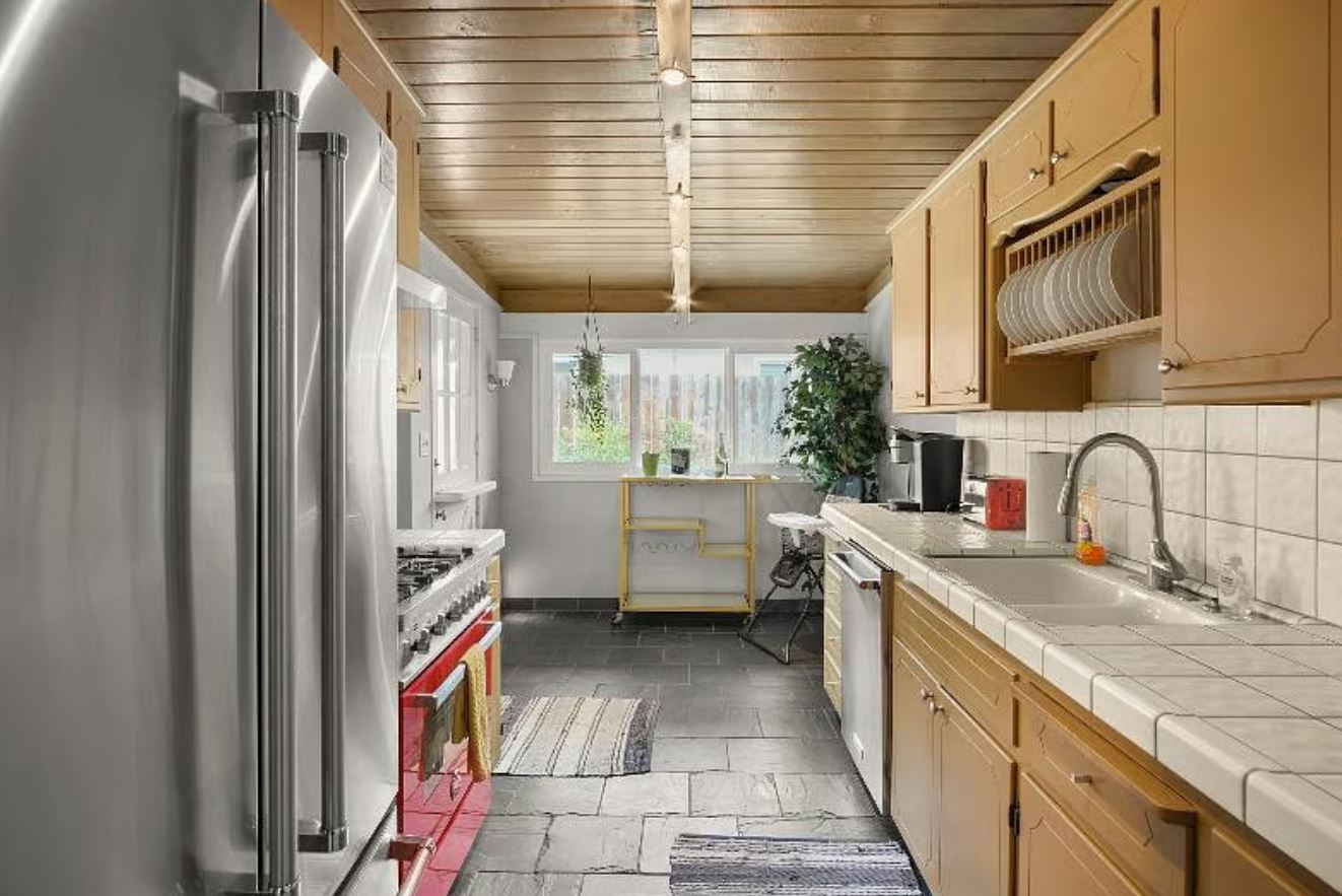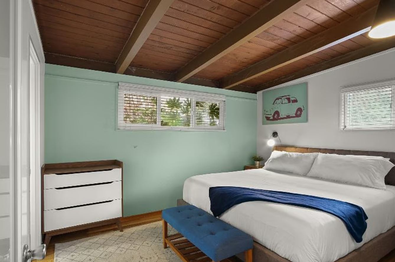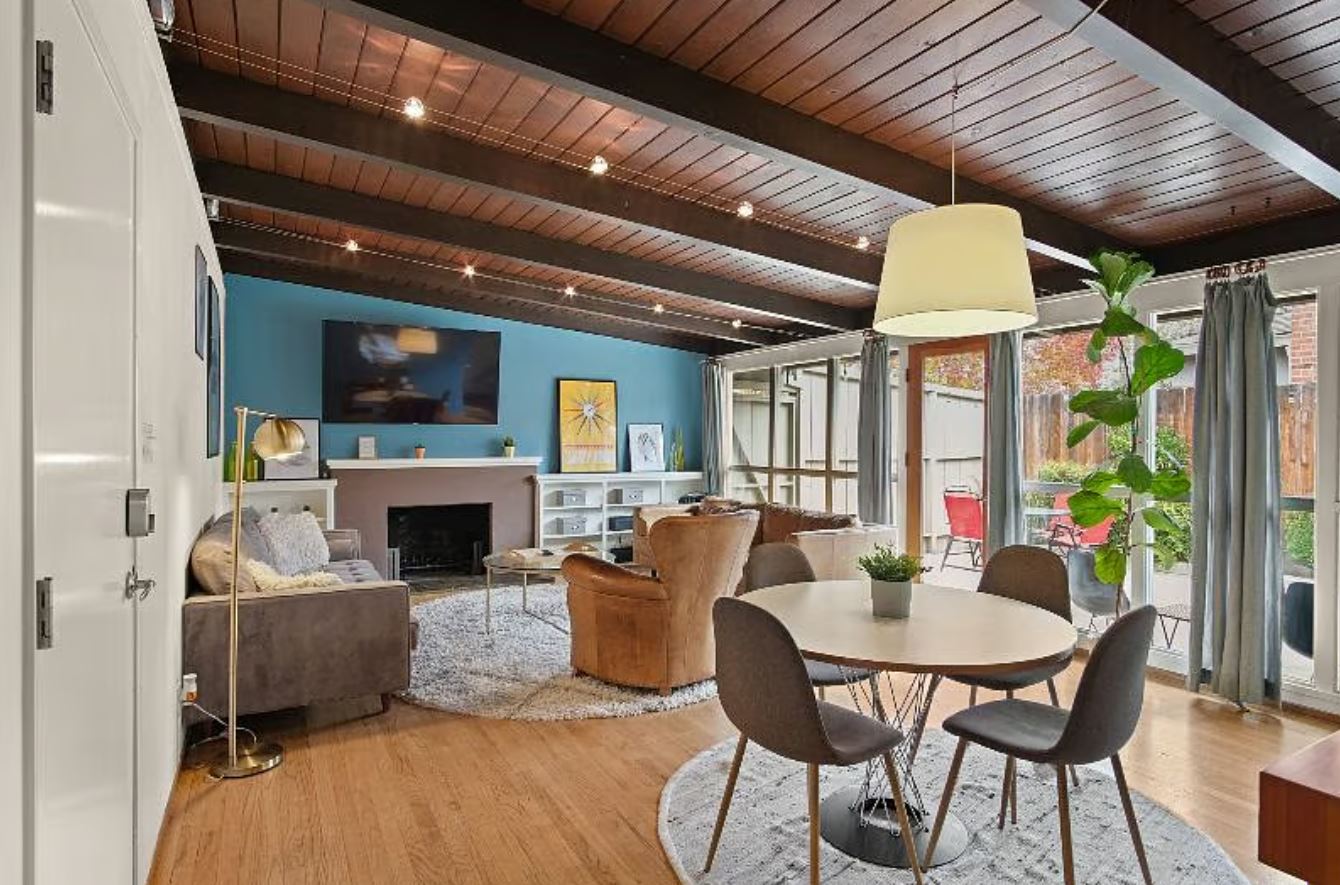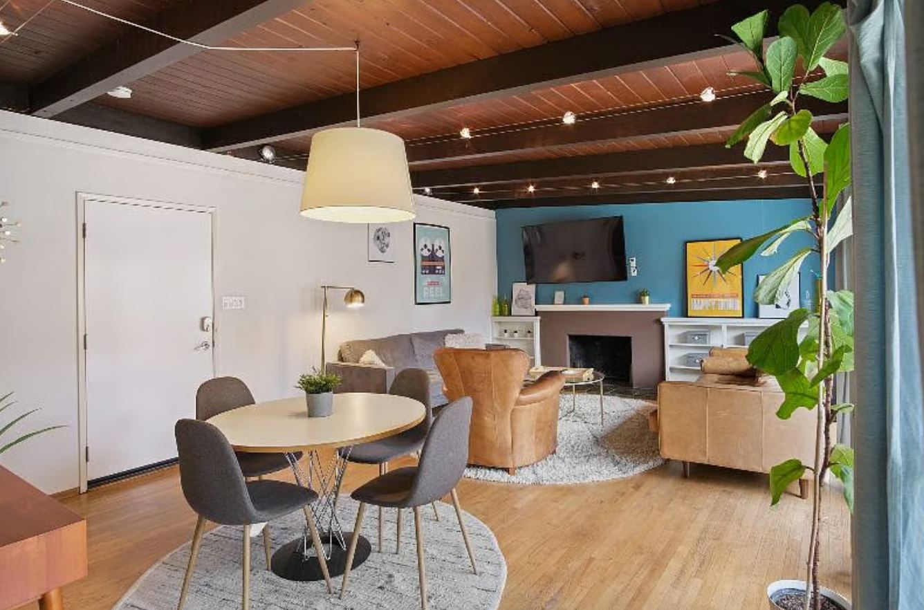Renovated 3bd/2ba modern home was built in the 1950s, has upscale furnishings and decor, 70-inch flat screen, large windows with natural lighting,