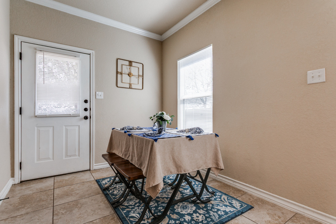 This well-maintained, Unit 1 of a quadplex is ideally located near IH-35 at 1604, tucked behind Retama Park and just minutes from JBSA/RBFCU, major highways, shopping, and dining. New laminate flooring in all three bedrooms. The first floor showcases designer touches including decorative tray ceilings in the living area and ceramic tile flooring throughout. The kitchen boasts granite countertops , black appliances, and dark walnut cabinetry. Spacious primary bedroom with walk-in closet and full, private bathroom. Fenced back yard, and a one-car attached garage w/ 2 car off-street pad for additional parking. Full size new washer and dryer in garage.