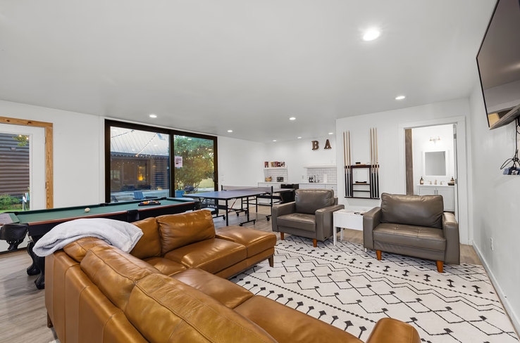 This cabin has EVERYTHING you need for a fun, luxury getaway in Fredericksburg- brand new pool, hot tub & mini golf + jam packed with amenities including pool table, ping pong & so much more!