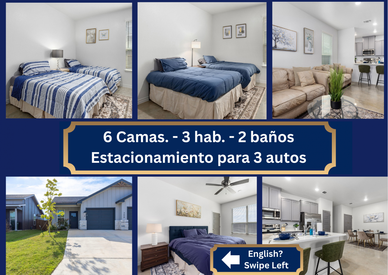 This 2-bathroom home includes six flexible sleeping spaces—ideal for groups, teams, or multi-generational families.