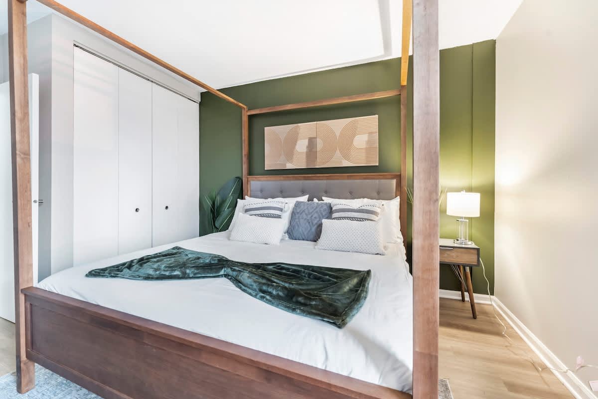 Experience luxurious downtown Oak Park living in this newly renovated, top-floor 2-bedroom unit with stunning city views. Enjoy premium amenities, including a rooftop terrace, 24-hour fitness center, and secure garage parking. Steps from the green line, Metra, dining, shopping, and entertainment, this home is perfect for both relaxation and productivity. Sleeps up to 5 with a rollaway bed for extra flexibility.