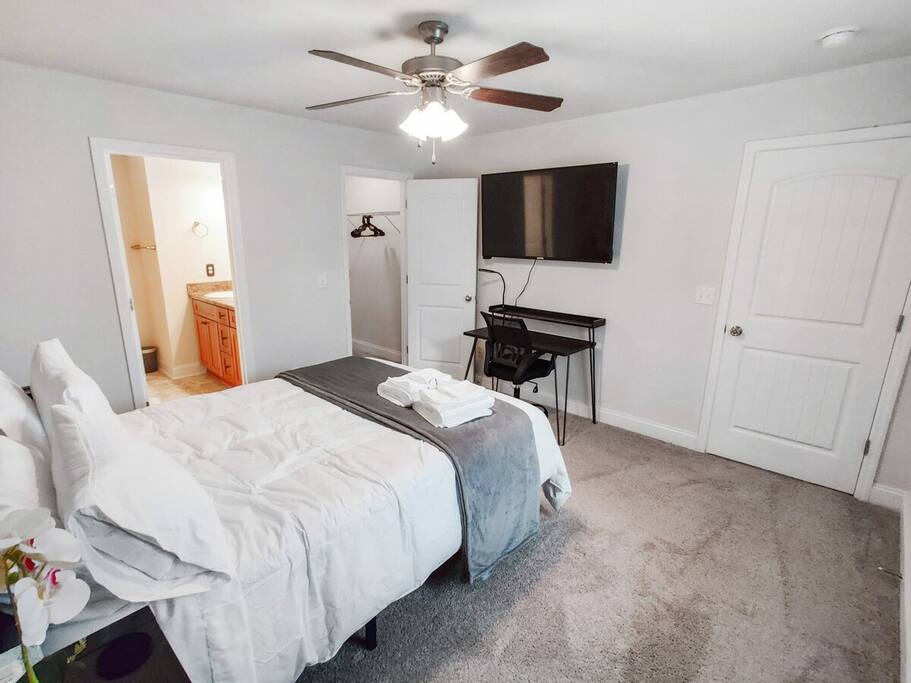 1400 sq ft house, 2 bedrooms with ensuite bathrooms and 1 bonus bedroom with private bathroom and plenty of space. Large 55" flat screen TV with full motion mounts in every bedroom and the great room. Full access to all house amenities including laundry, kitchen, and living room. 3 minutes from Super Walmart, grocery, and countless food spots. 30 seconds from the lowest priced gas within 100 miles. 5 minutes from the mall, movies, Augusta National (Masters), Fort Gordon, and much more!
