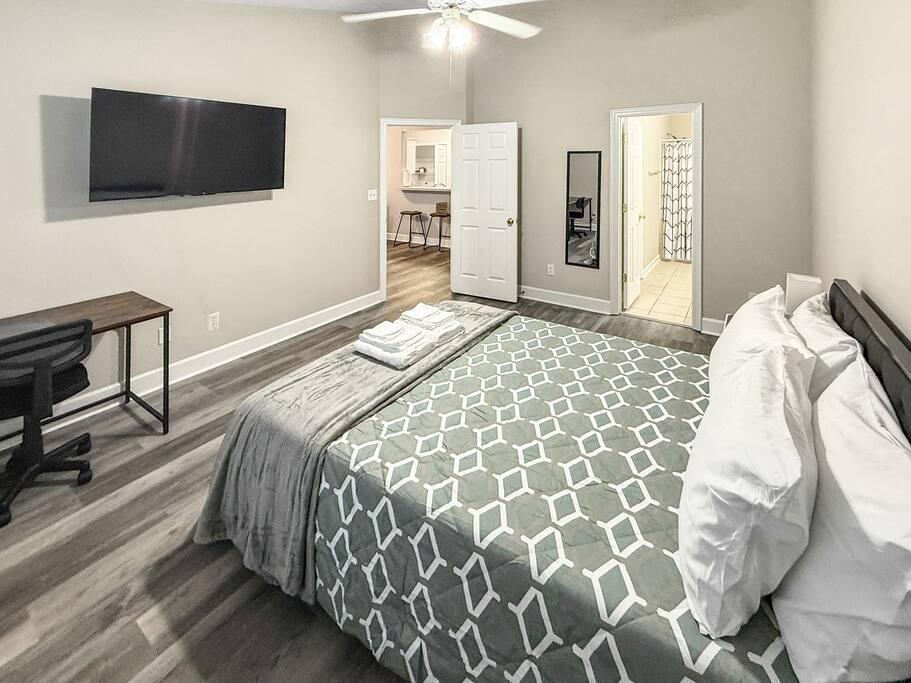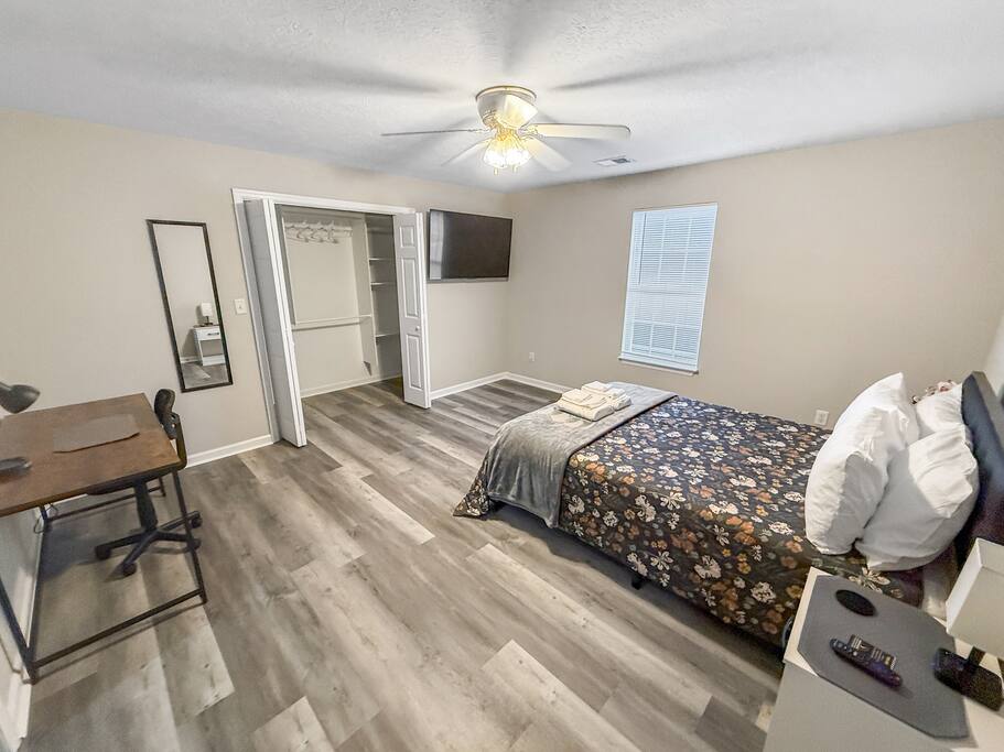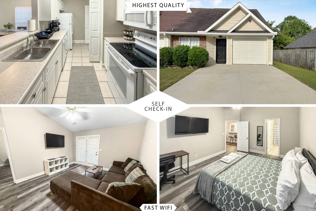 1600 sq ft house, 1 bedroom with ensuite bathroom and 2 bonus bedrooms with private bathrooms and plenty of space. Large 55" flat screen TV with full motion mounts in every bedroom and the great room. Full access to all house amenities including laundry, kitchen, and living room. 3 minutes from Super Walmart, grocery, and countless food spots. 30 seconds from the lowest priced gas within 100 miles. 5 minutes from the mall, movies, Augusta National (Masters), Fort Gordon, and much more!