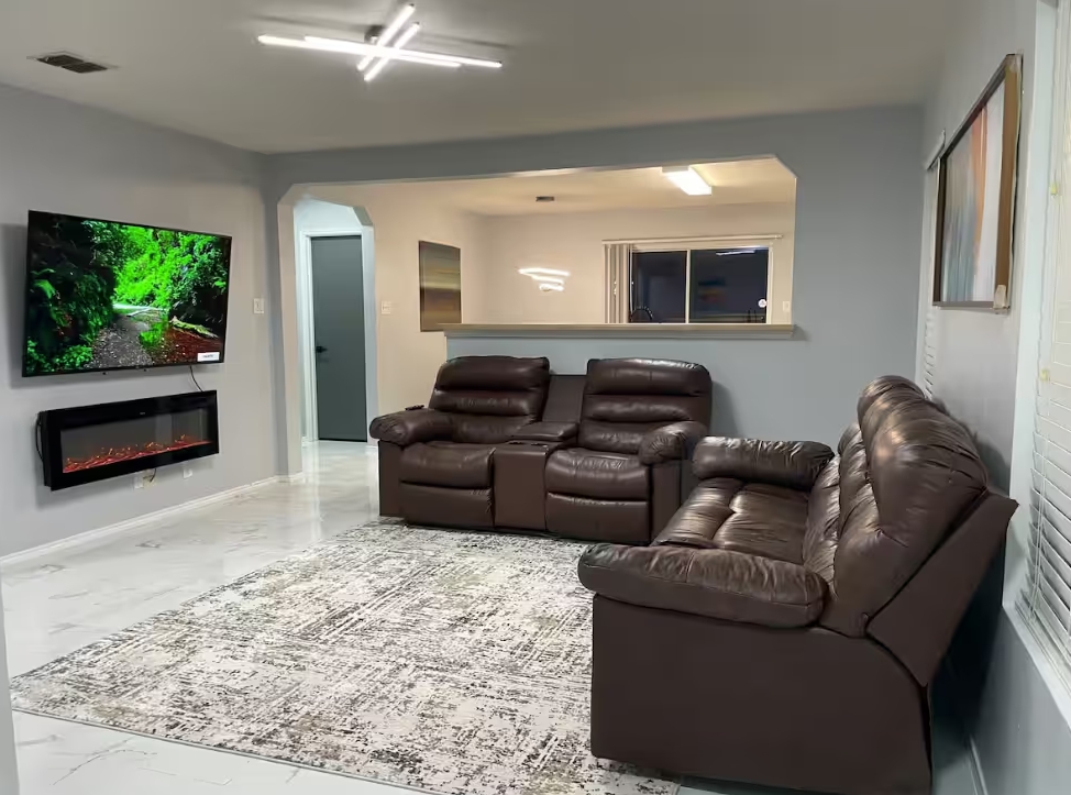 NO Check-out tasks, our cleaners take care of it all! Nice 3 bed 2 bathroom home 3 mins from JW Marriott TPC BULVERDE EVANS 65” tv & 50” electric fireplace in living room 55” tv in master & king mattress 50” and 43” in other 2 rooms & queen mattresses All rooms have Comfortable memory foam beds and nice comfortable pillows Nice leather sofa & stylish dining table Fenced backyard in a family friendly neighborhood Neighborhood has a nice community park in walking distance!