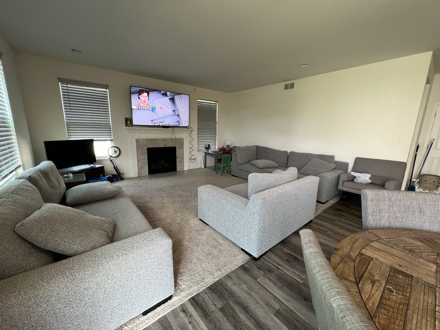 Single Family Home, 4 bedrooms, 2 and half bath, White Cabinets, Grey floors, beautiful home and in a presitgious Neighborhood in Crown Point, IN, 5 mins from 1-65, 45mins drive to Chicago, IL. 3 King Beds, 1 Queen Bed, 2 living rooms, 2 dinning rooms, office and more!