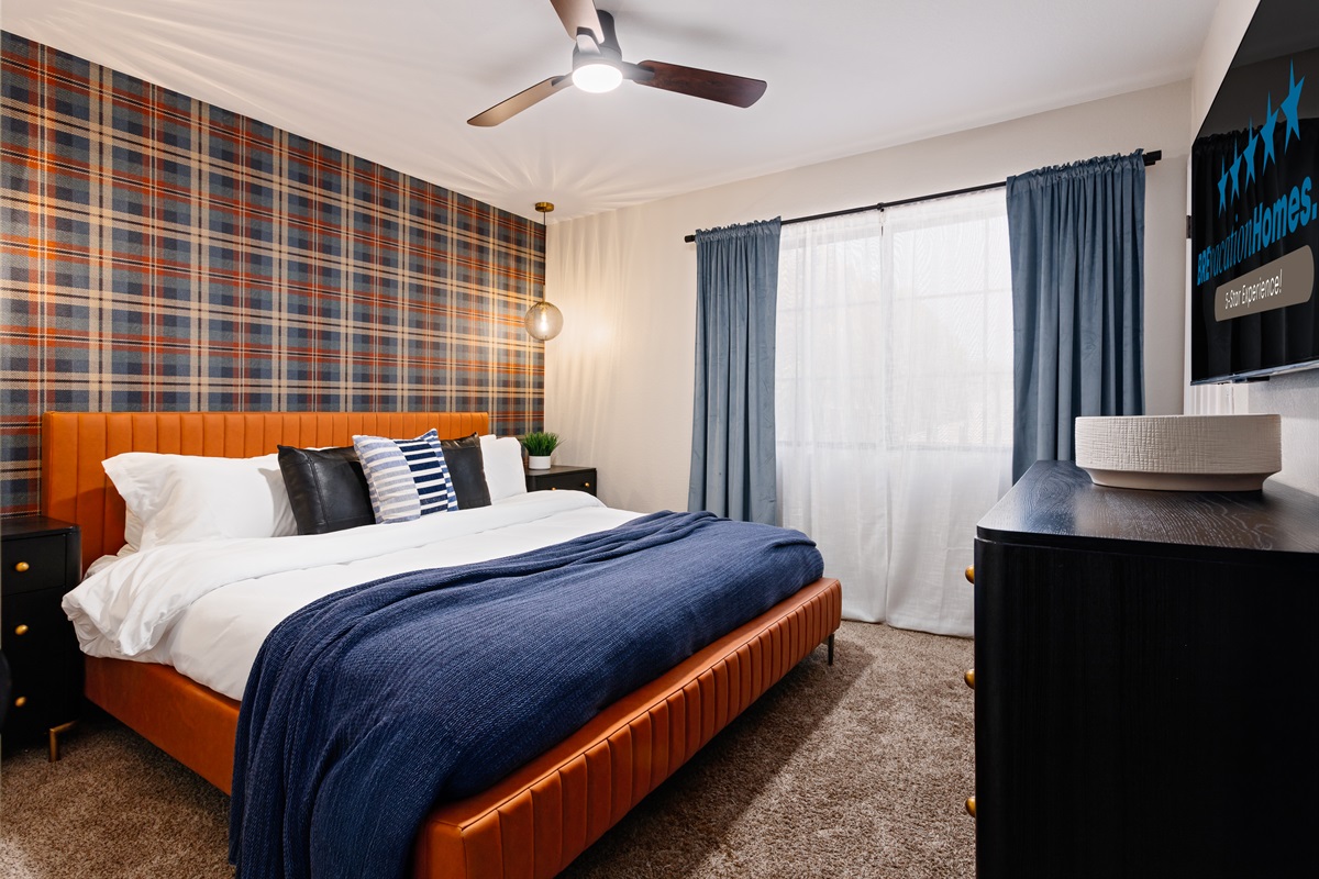 BRAND NEW professional transformation, interior and huge backyard, to upscale Euro Modern Style. You'll love the bright, open floor plan with soaring vaulted ceilings. This stunning, 4 bedroom house +bonus room with 3 full bathrooms, 2 king size beds and new pool table has it all. You won't want to leave! No expense spared with ALL Brand New Furniture throughout, inside and out +7 New Smart TVs with many streaming channels! Enjoy the stunning backyard oasis with majestic mountains in your backyard. T