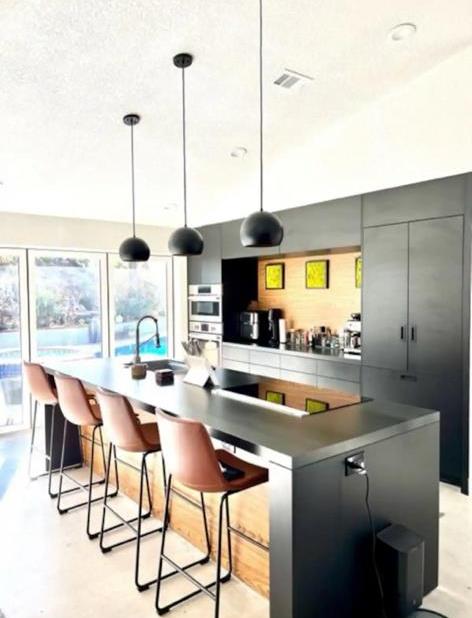 Enjoy a relaxing getaway at this stylish Encinitas home, just minutes from the beach. This property is the perfect place to kick back and relax with family and friends. The beautiful open plan living space opens up to an expansive outdoor entertainment area, featuring a pool, jacuzzi, bar with built in BBQ & fridge, lounge seats, dining area, and fire pit.