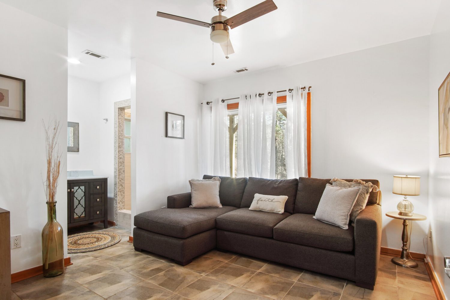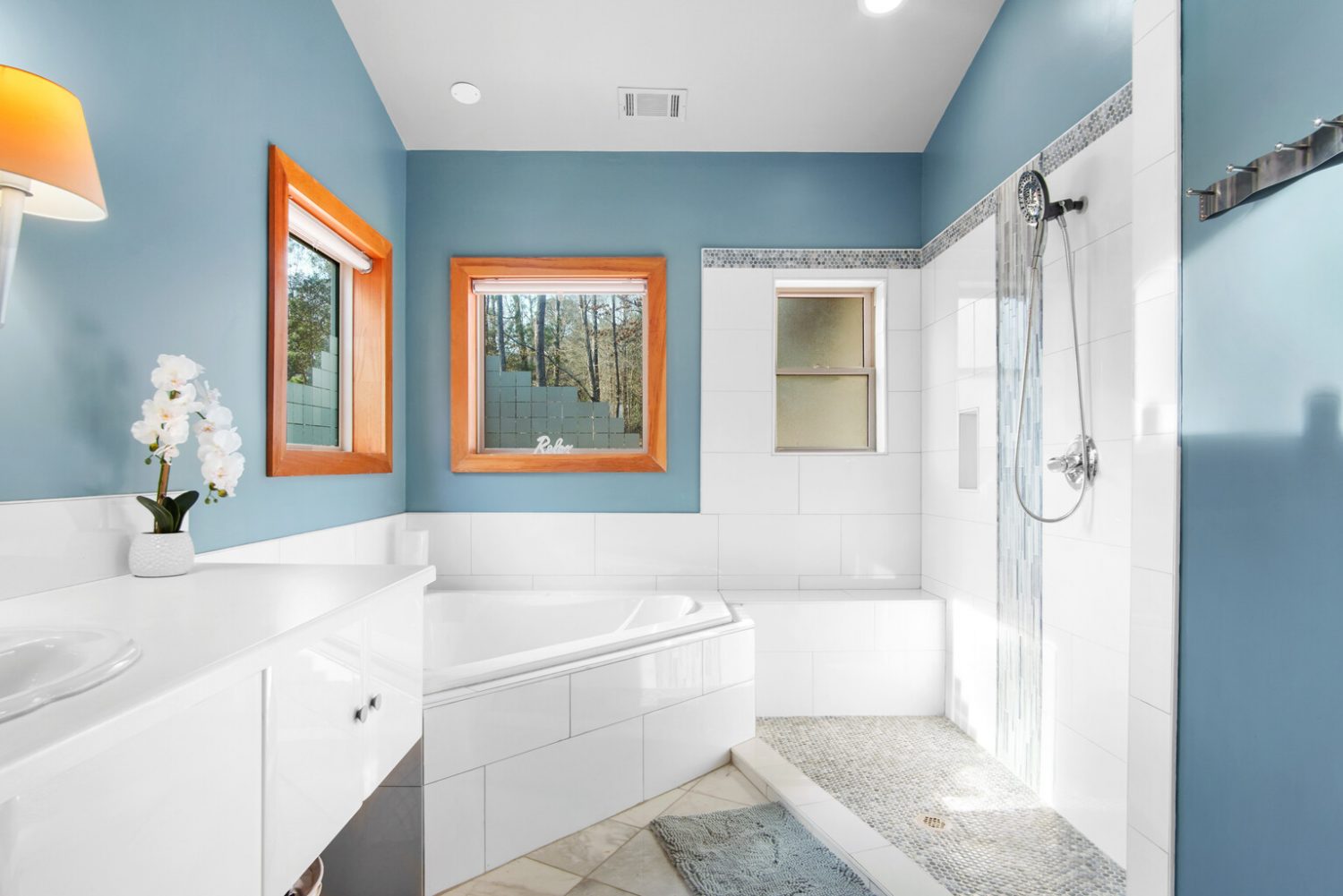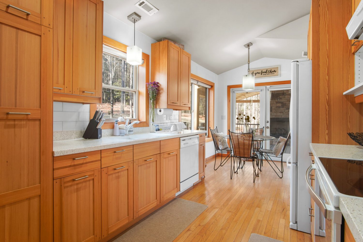 The home is nestled on a scenic private lot, this contemporary home blends sleek design with the tranquility of nature. The property offers a stunning open-concept layout with large windows that flood the space with natural light, bringing the beauty of the rustic outdoors in. High-end finishes, minimalist aesthetics, create a sense of elegance and simplicity throughout.