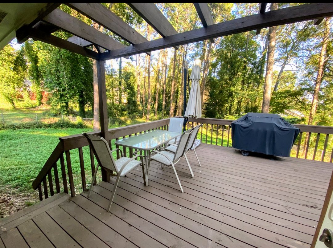 This family home includes 3 bedrooms/2.5 bath. It sits on a cul-de-sac in a quiet community with a dining, family room with a work station, laundry room, fully stocked kitchen, and a renovated deck with grill. It's a great space for children, etc since the Big backyard is Fenced!