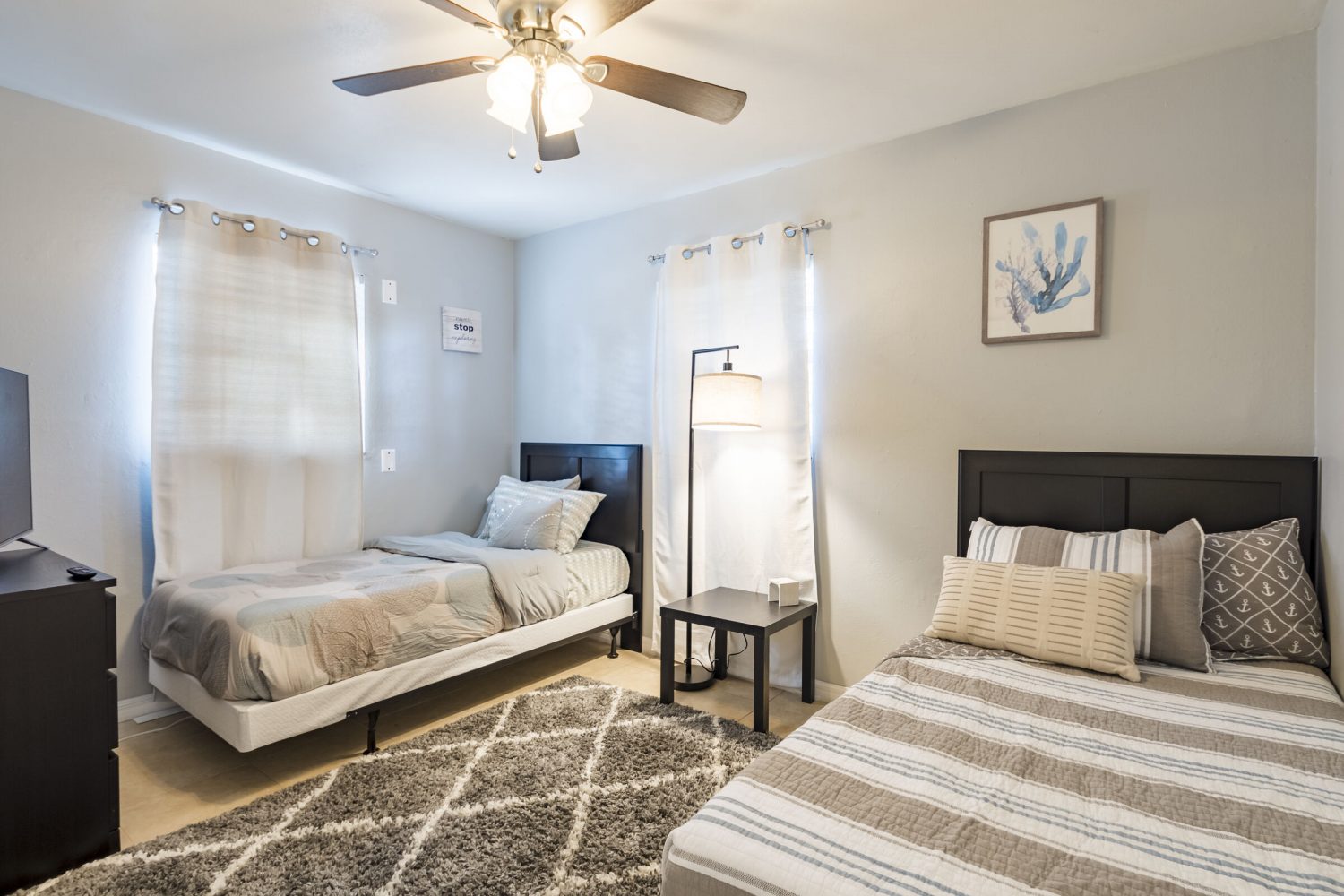 This fully furnished property offers the perfect blend of comfort and convenience, making it an ideal home for anyone seeking a move-in-ready space. The property is completely fenced in, providing both privacy and security, and is located in a safe and secure neighborhood, making it a great choice for families and pet owners alike. Pets are warmly welcomed, ensuring your furry companions will feel right at home. Inside, you'll find thoughtfully curated furnishings that create a stylish and cozy atmosphere. The property is also equipped with blackout curtains, allowing you to enjoy restful sleep or complete privacy whenever desired. High-speed internet is included, ensuring seamless connectivity for work or leisure. Additionally, self check-in is available, offering maximum flexibility and ease of access. Whether you're looking for a peaceful retreat or a functional living space, this property has everything you need to settle in comfortably.