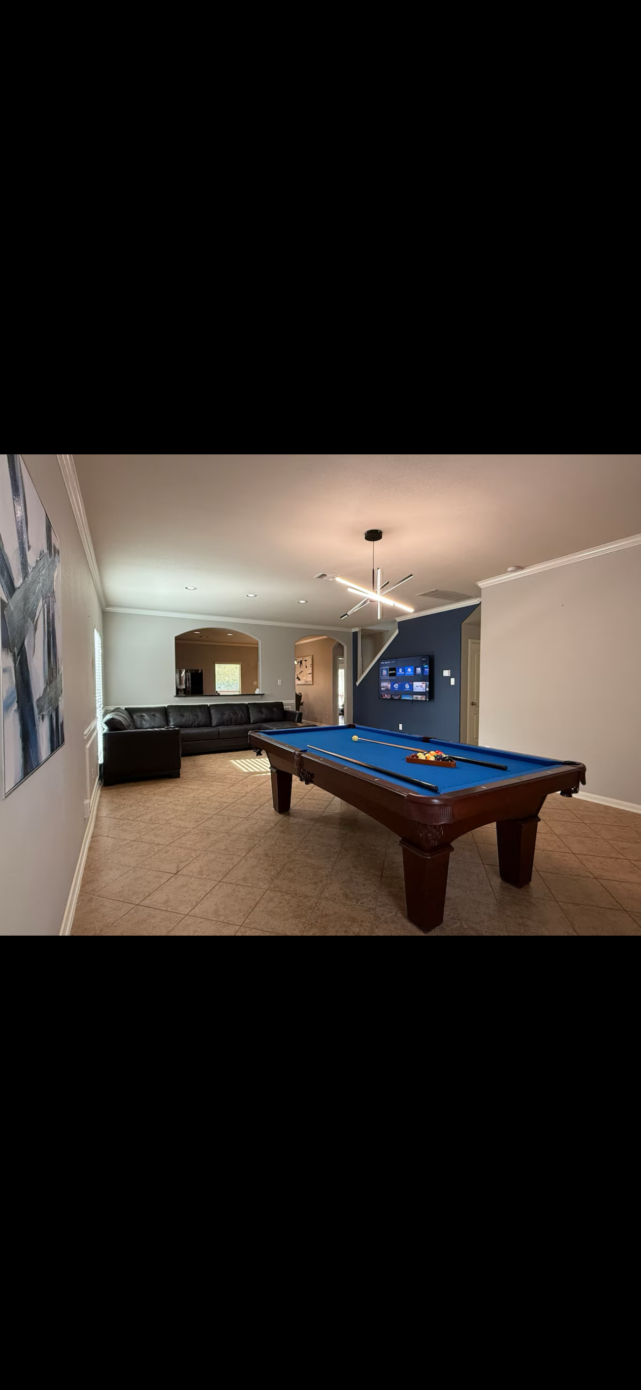 Enjoy the pool table and ping pong table in the game area or relax in the large, spacious yard. The open living space is perfect for gatherings, and the fully equipped kitchen makes meal prep a breeze.