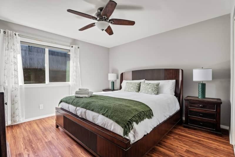 Enjoy a private backyard with a fire pit, BBQ, and corn hole. The home features a chef’s kitchen, fast Wi-Fi, and parking for 3 cars. Sleeps 7 across a King and two Queen beds. Two dogs welcome with approval. Quiet hours 10 PM–7 AM; no parties or smoking. Book your getaway today!