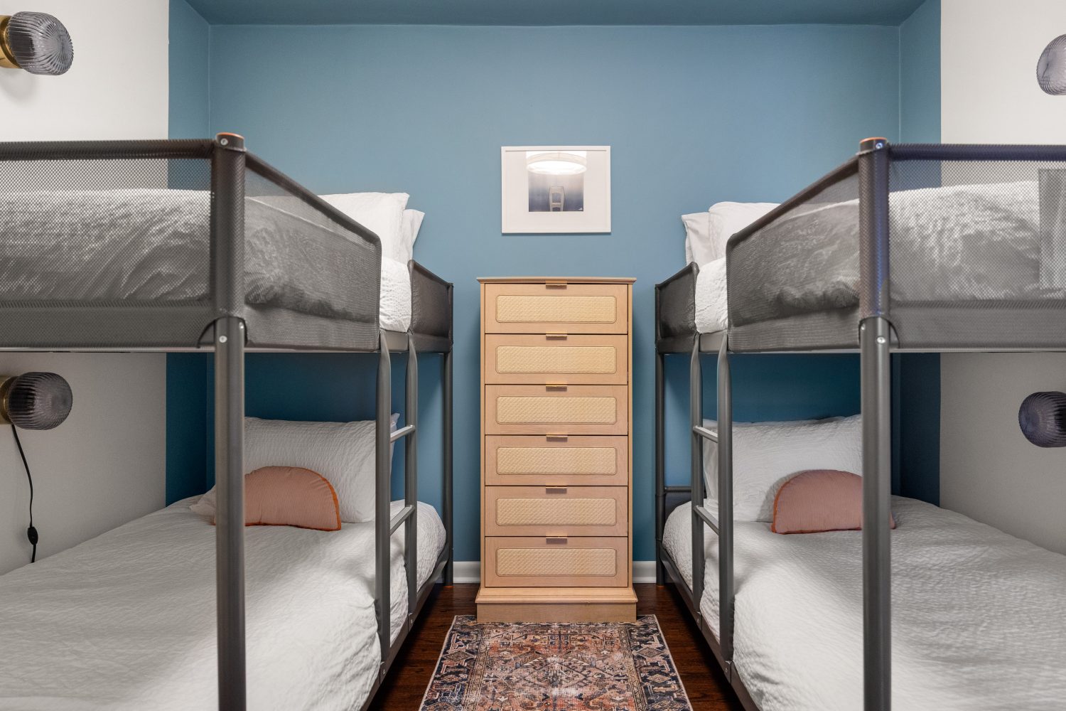 This spacious, pet-friendly 4-bedroom, 2-bath home comfortably sleeps 12 plus an additional 2 guests on a provided air mattress. Upstairs, you’ll find three bedrooms and a full bathroom stocked with shampoo, conditioner, and body wash. Bedroom 1 features a king-size bed, bedroom 2 has a queen, and bedroom 3 offers two twin bunk beds (four twins total). All rooms include closets and dressers for your convenience. Also, has luggage rack and laundry baskets available.