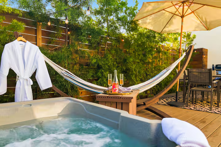 Casa Stella truly shines when it comes to outdoor space. The private backyard is your tranquil haven, complete with a cozy fire pit, comfortable seating, and plenty of room to unwind with a morning coffee or evening drinks. Whether you’re dining al fresco or soaking up the California sunshine, this outdoor area delivers the ultimate relaxation.
