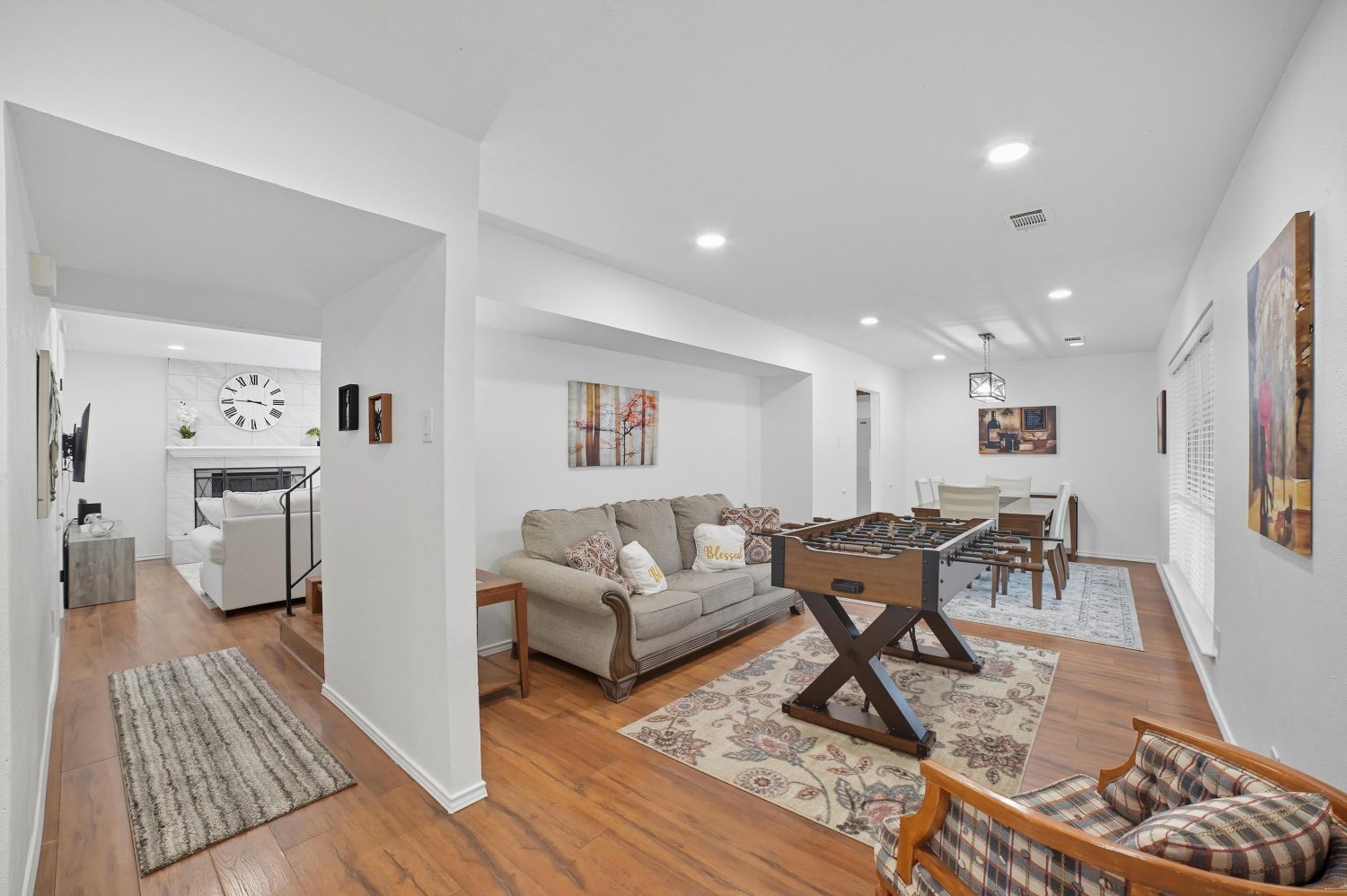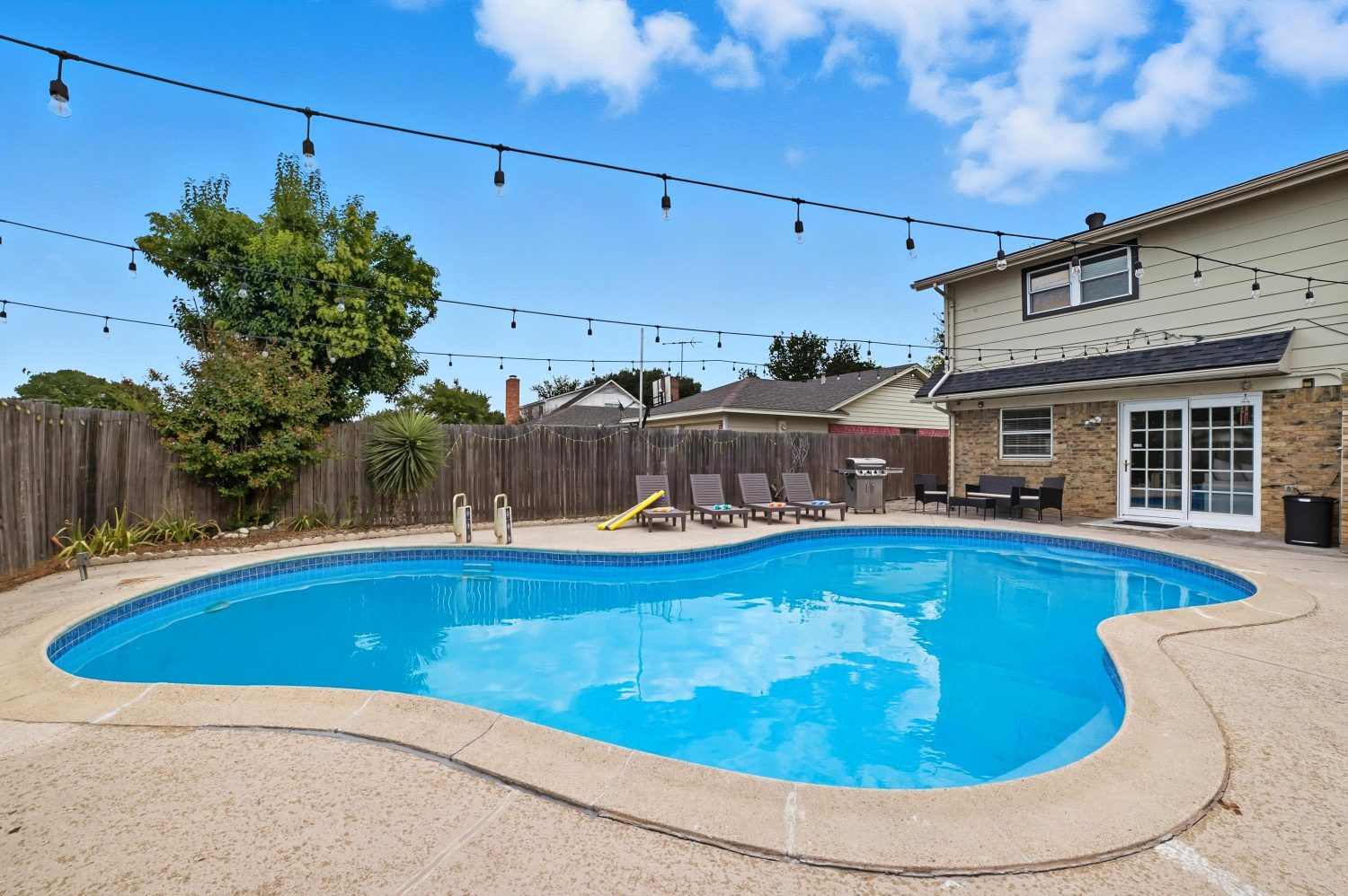 Families and groups will appreciate the space and luxury that this 5 bedroom retreat with pool provides! This beautiful home accommodates up to 11 with 2 king beds, 3 queen beds, and a twin floor mattress for an extra sleeper! There are 2 dining areas, a spacious living area and a game room with foosball table. For those who need to work while they play, there's a desk and chair, too. Don't forget the large pool in the fully fenced backyard with plenty of space for lounging and a grill, too!