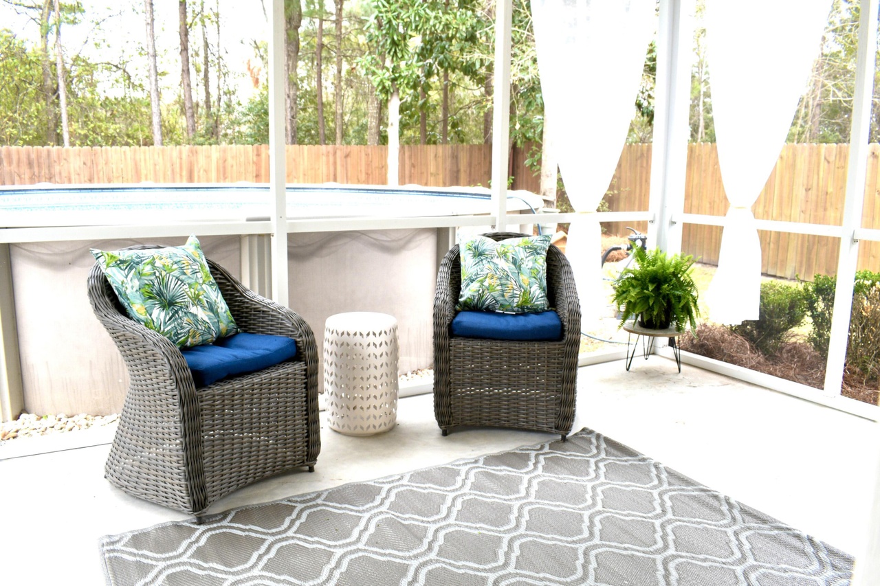 Ranch home with a open floor plan, fully furnished four bedroom and two full bath. It has a large hardwood foyer opens to a formal dining room which also has hardwood floors and beautiful custom chandelier hanging to greet you. The kitchen is welcoming with a great eat in area next to a cheerful bay window offering lots of natural light. The kitchen offers beautiful granite counter tops and a raised breakfast bar along with stainless steel appliances, smooth cooktop range, dishwasher, built in microwave, side by side refrigerator and slide-out shelving in the lower cabinets. This awesome kitchen looks out to a huge great room featuring a gas fireplace. This home has a split floor plan with two nice size bedrooms with lots of closet space.The owners suite is a retreat and offers plenty of privacy. This owner suite is very large with a amazing walk-in closet. The on-suite bathroom features granite counter tops, dual vanities, garden soaking tub and a separate shower. This home fourth bedroom is tucked away upstairs for privacy and a very large walk in closet. The backyard will be an oasis for any family with a very nice screened in porch with ceiling fan along with great above-ground pool and custom deck to relax and enjoy. The backyard also features a cute brightly colored storage shed that accents the yard and an area to cook out and entertain guest. This property has plantation shutters throughout, upgraded paint, lighting and much more.