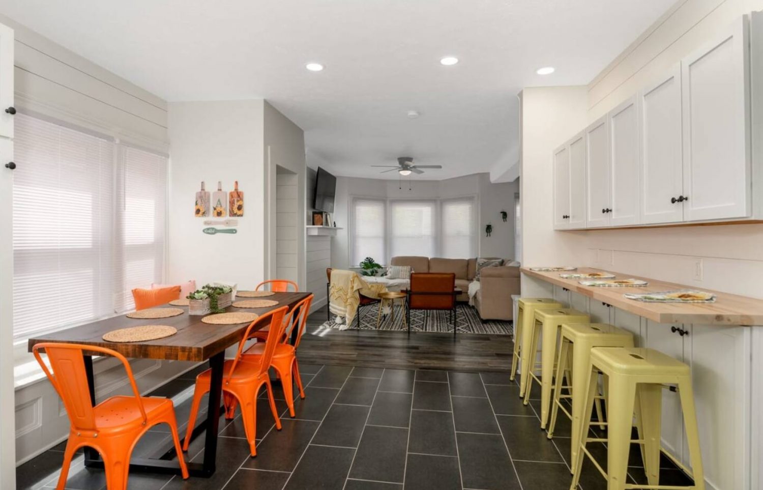 As you enter the house, you’ll be welcomed by tons of sitting spaces in the living area. Take a mandatory selfie with our Neon Cleveland sign, share in social media and don’t forget to tag and send us your photo! @EagleStays