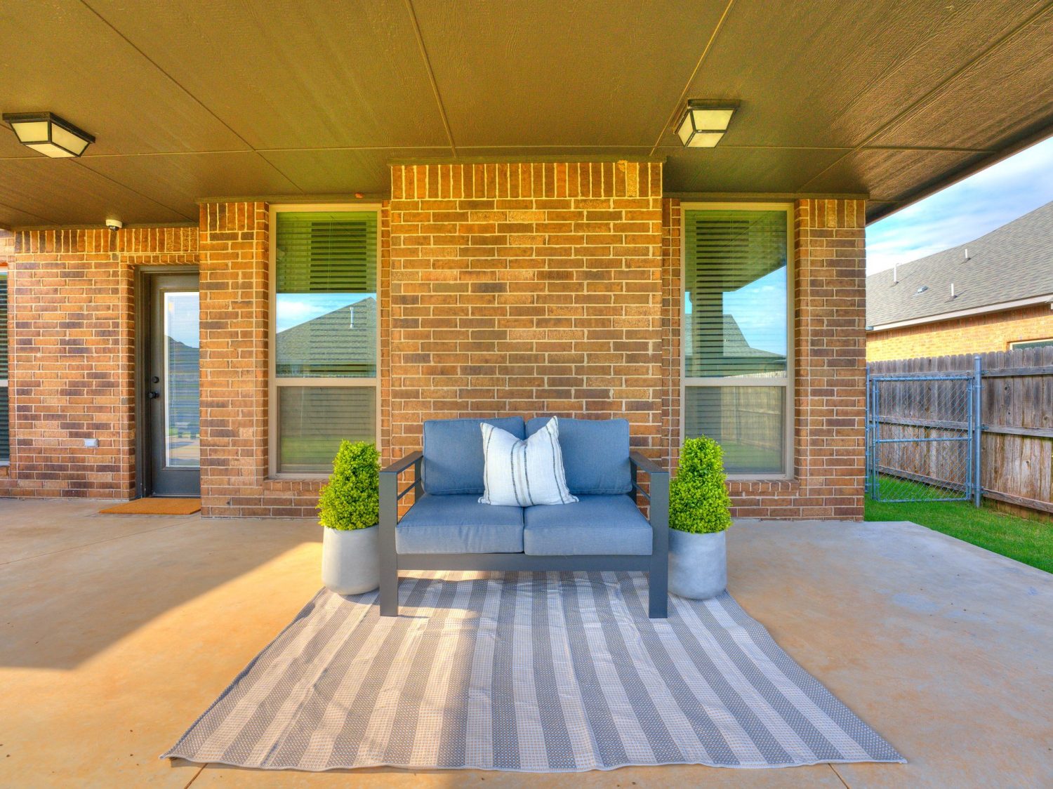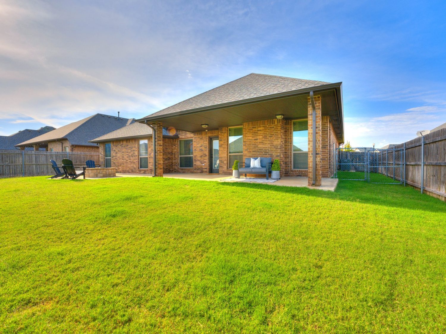 Wonderful 3-bedroom home, plus an office! Features an open floor plan that gives a delightfully spacious feel! The kitchen showcases a center island with seating overlooking the family room. A generous-sized primary suite and walk-in closet connects to the mudroom and laundry for easy, functional living! The backyard space has a covered patio and fire pit. Three-car garage and storm shelter. Located in Talavera, conveniently located near I-35, restaurants, shopping, and great schools!
