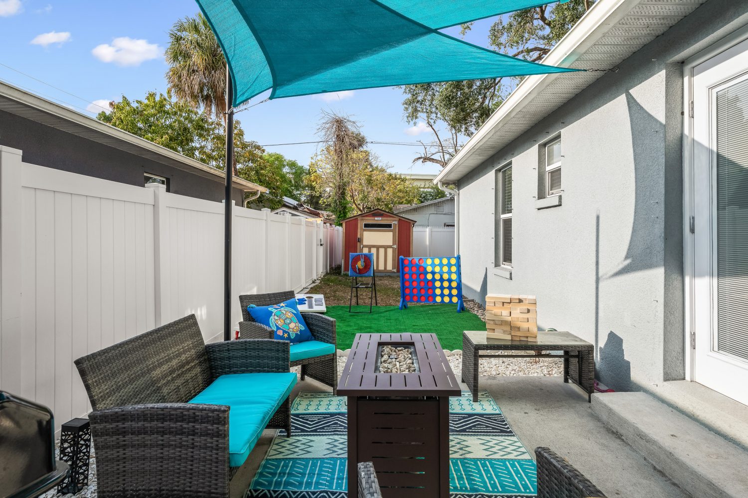 Relax with smart TVs in every room and a well-equipped kitchen perfect for cooking at home. Step outside to enjoy the backyard, which now includes a versatile pickleball court (convertible for volleyball, badminton, and more) and plenty of family-friendly yard games. An inflatable hot tub, bikes, and additional outdoor rentals are available to make your stay even more enjoyable.