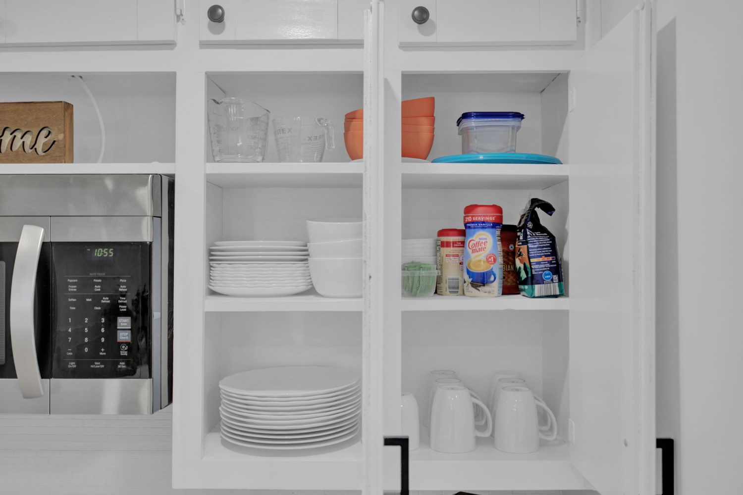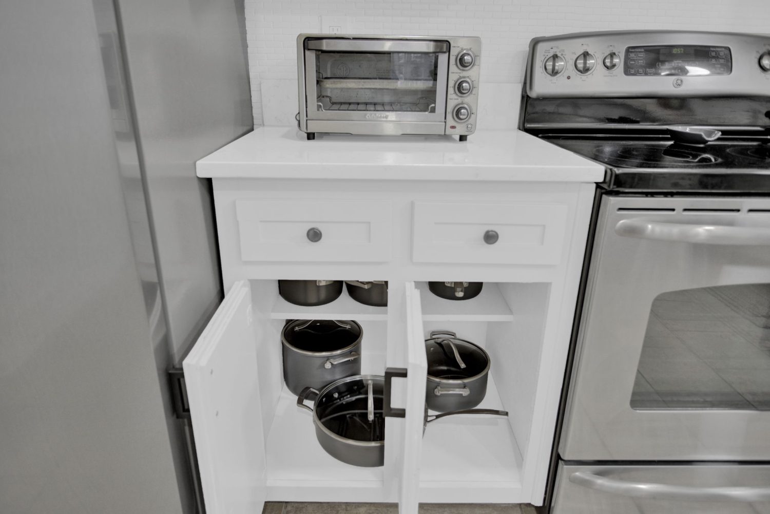 Fully Equipped Kitchen: Ready with all pots, pans, dishes, utensils, and a coffee maker, etc, making it easy to prepare home-cooked meals.