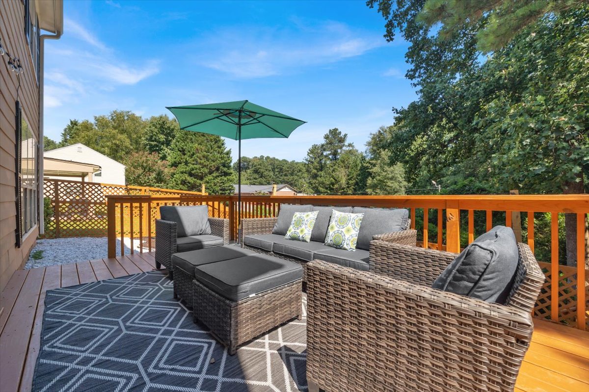 This Lilburn property offers a unique blend of outdoor tranquility and indoor fun, making it an ideal choice for your mid-term rental needs.