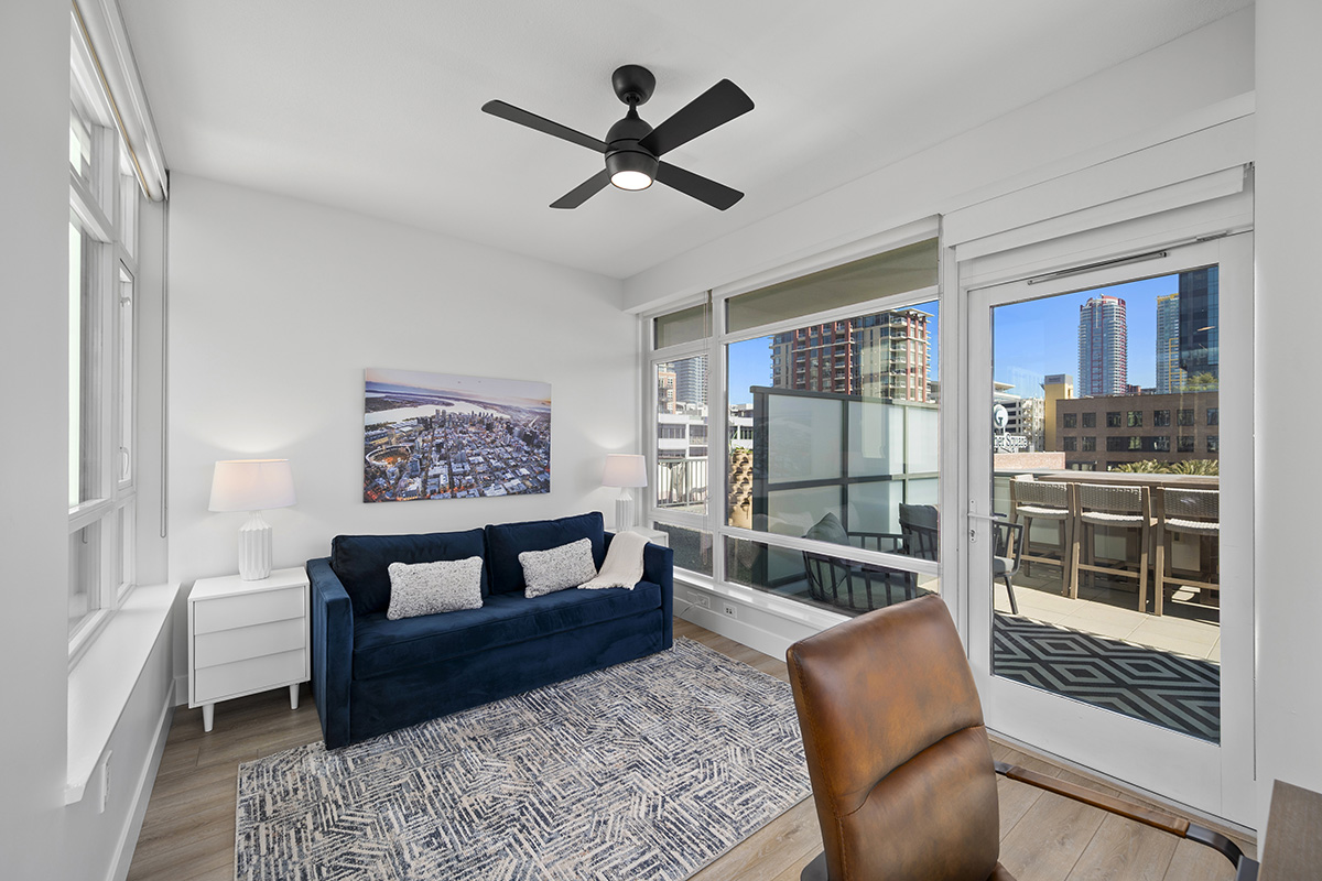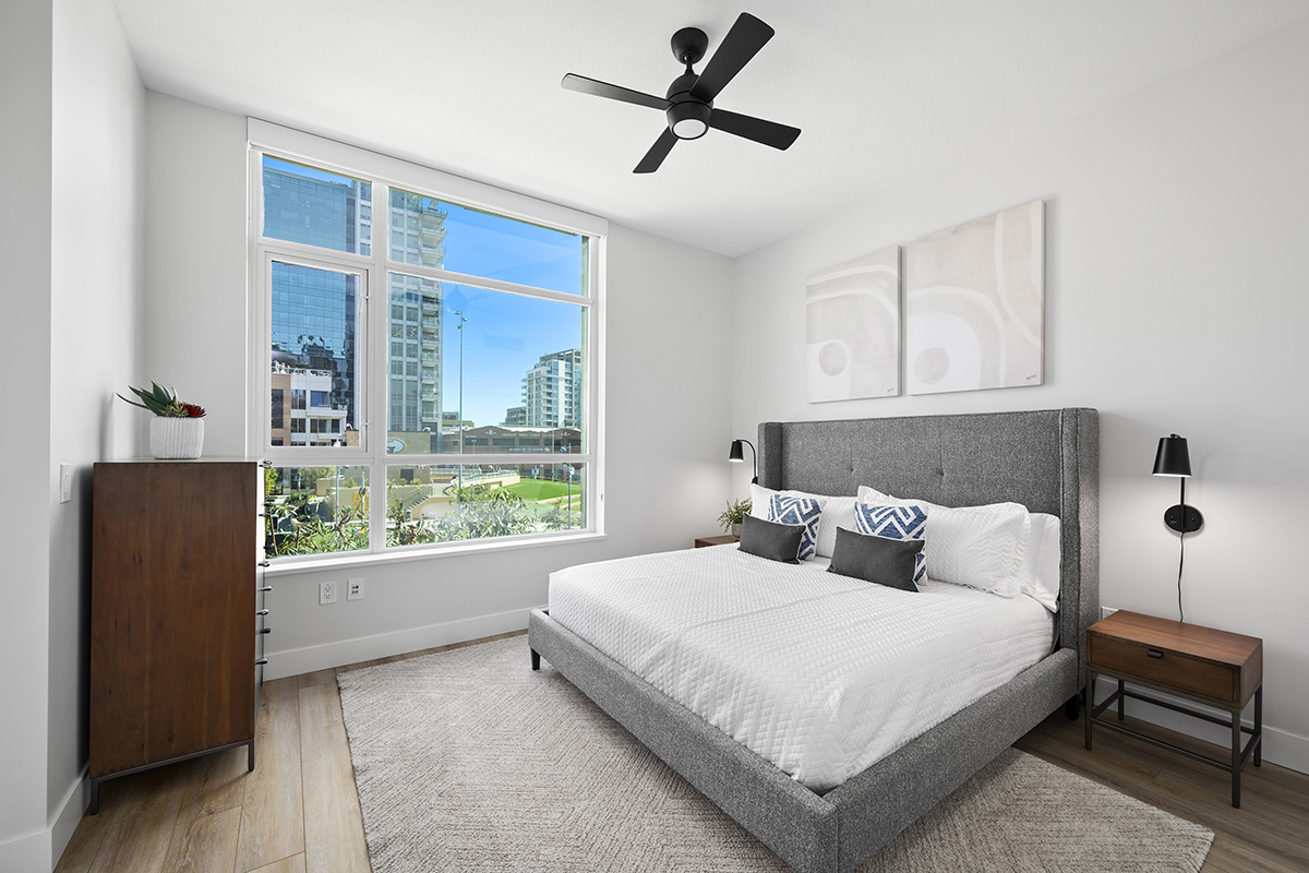 This townhome is located within The Legend community in the heart of East Village, which enjoys a unique status as one of the only residential condominium complexes that sits inside the gates of a national baseball stadium. The Legend is located within the gates of Petco Park, home of Major Legue Baseball’s San Diego Padres, and host to everything from baseball games to concerts to special events. This locale puts it in close proximity to a multitude of tasty spots to grab a bite and brew, and shopping opportunities galore. The nearby Harbor Drive Pedestrian Bridge also provides easy access to the San Diego Convention Center, Seaport Village, The Embarcadero, and all that they have to offer.