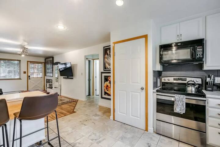 Eddie Van Halen’s BFF stayed here! Remodeled a couple of years ago and the kitchen has everything you could possibly need. On the huge deck is furniture for outdoor dining and a grill. Super comfy spot with music memorabilia EVERYWHERE. The Music Box will instantly feel like an old friend you went to concerts with.
