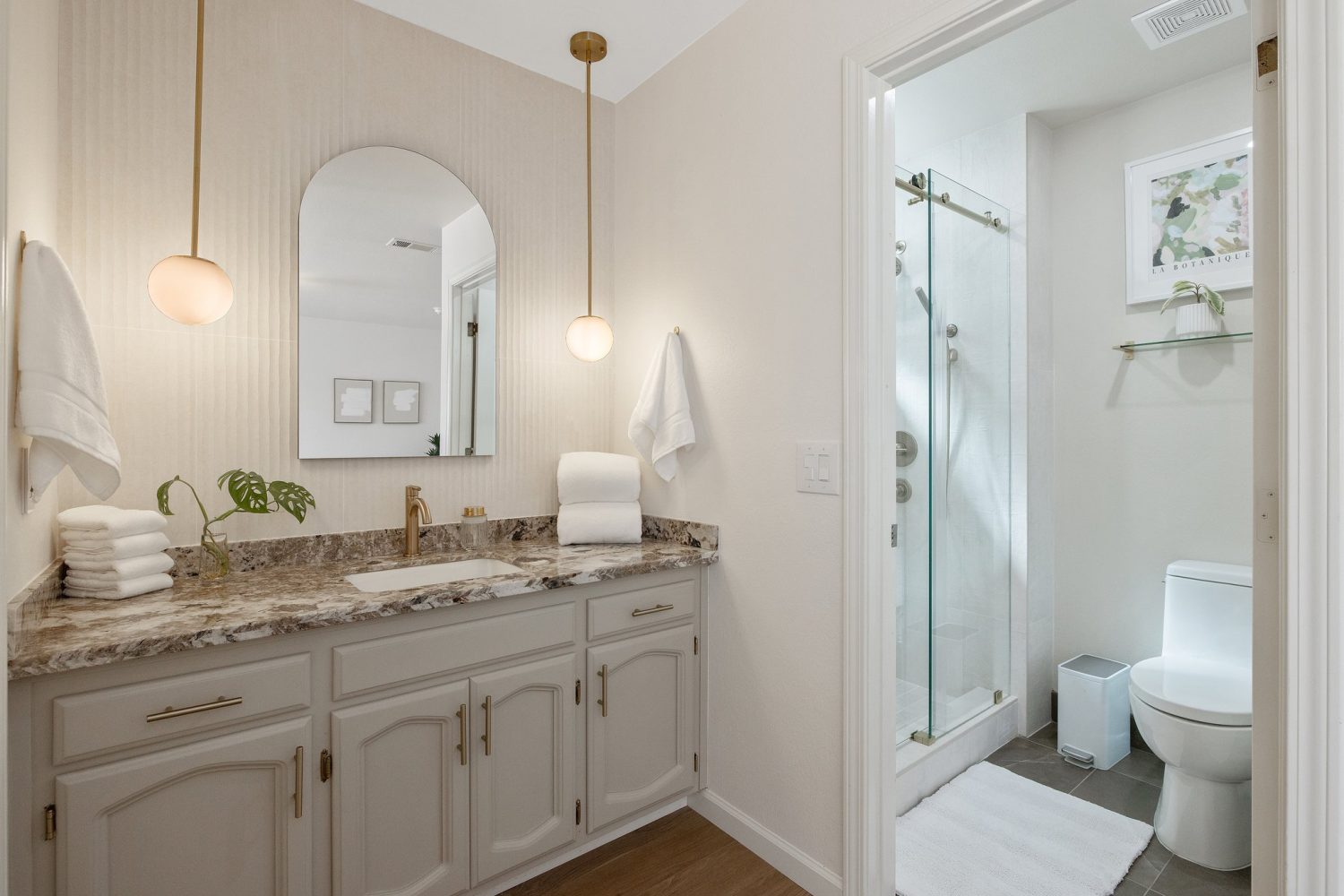 We offer a 3-bedroom, 2-bathroom fully renovated home, with interiors designed by our in-house architect. Located in the desirable North West area of Visalia, in close proximity to the 198 freeway. It’s only an 8-minute drive to Kaweah Delta Hospital and Downtown Visalia. The primary bedroom provides an en-suite bathroom and a walk-in closet. All bedrooms are furnished with foam mattress beds, black-out shades/curtains, dressers inside the closets and large mirrors. The kitchen has been set up with all the essentials including a coffee/tea bar perfect to start the day. The backyard offers a relaxing sitting area with plenty of space for kids and pets to play.