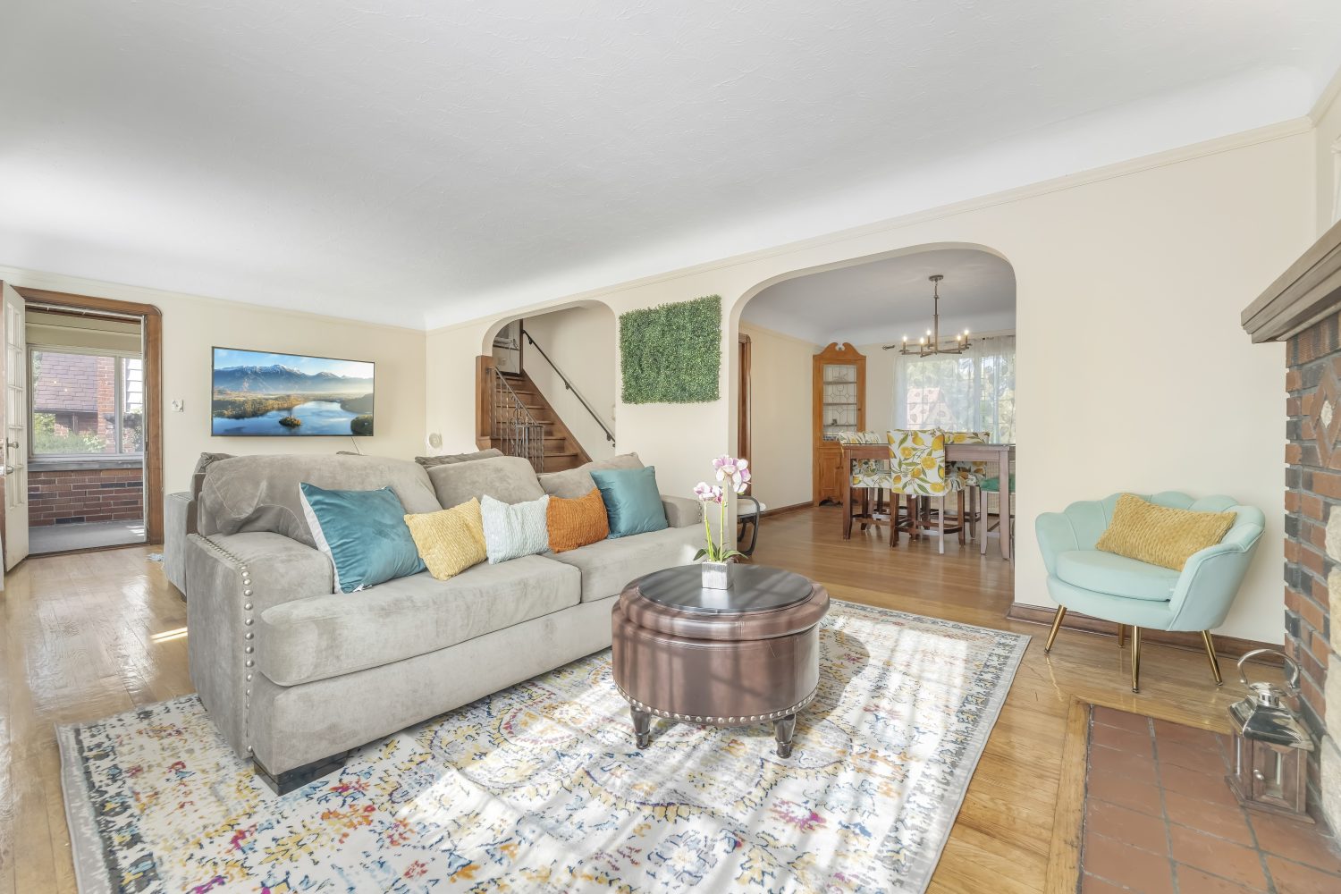 3BR 1.5BA King BR 2 Queen BRs fenced in backyard w/in 15 min to Uni hospitals, CLE Clinic, downtown, & shopping w/in 30 min to Hopkins airport hardwood floors throughout driveway w/2 car garage 3 smart tvs 1050 mps high speed Wi-Fi internet vintage modern decor pet-friendly family-friendly well-equipped kitchen spacious comfortable stylish entertaining bonus attic & basement spaces side porch covered balcony solid wood thru out