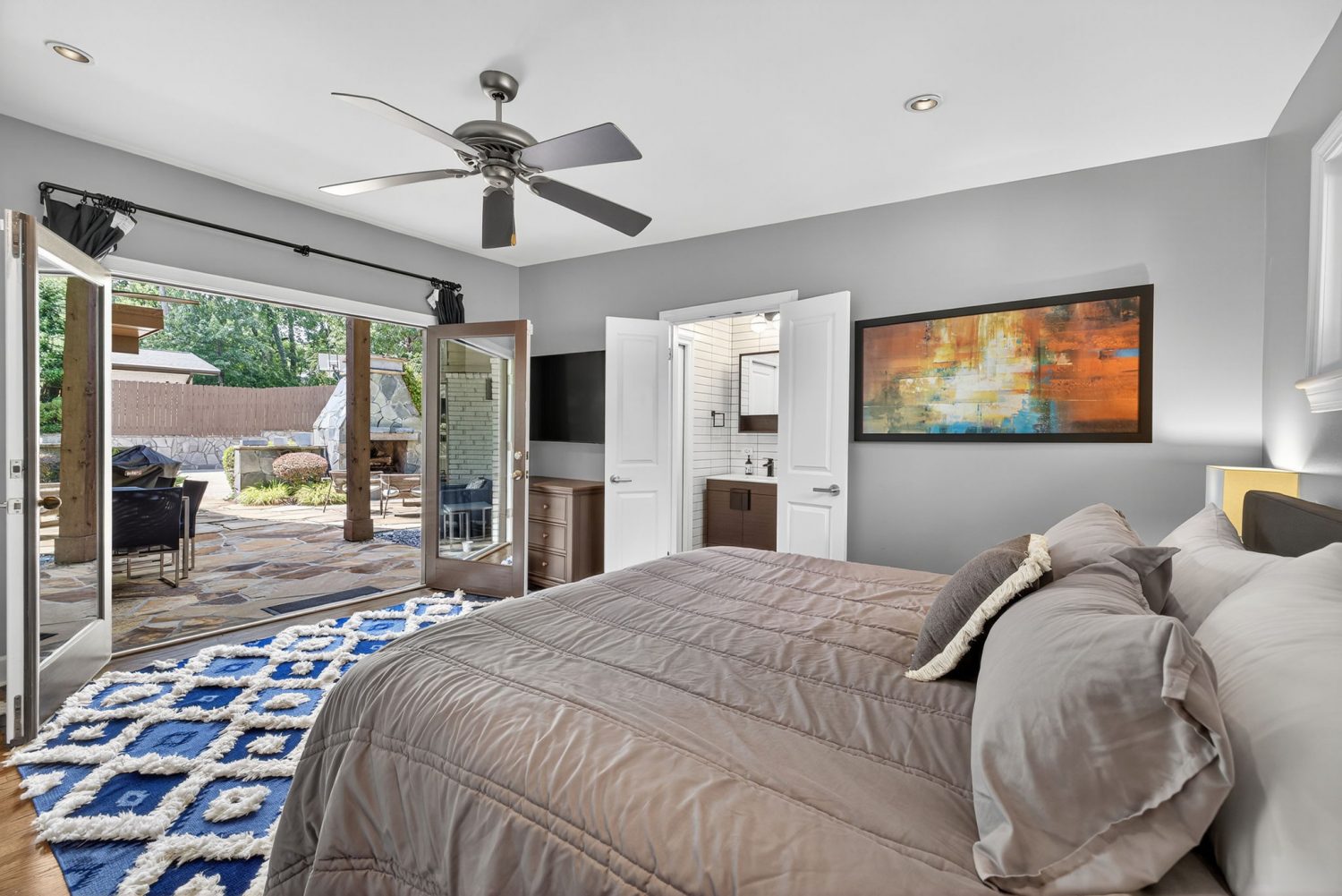 The Swank House blends mid-century modern style with everyday comfort, offering bright open spaces, a gourmet kitchen, and seamless indoor-outdoor living. The patios fireplace and meat smoker create a perfect gathering spot, while four spacious bedrooms sleep up to 8 guests comfortably ideal for families, groups, or professionals seeking style and convenience in Sandy Springs.