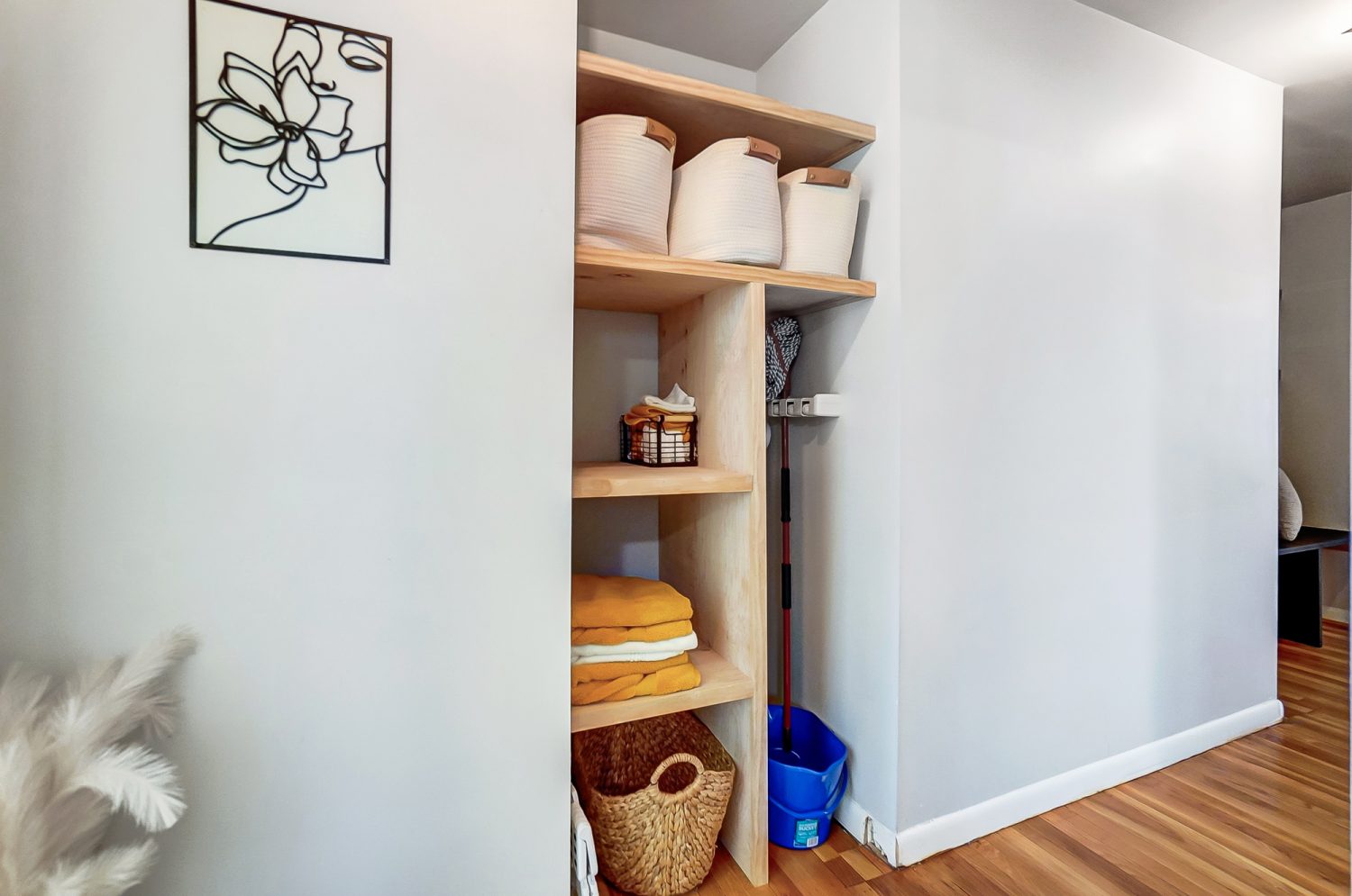 Spacious open concept living and kitchen area. Bathroom is a sanctuary of style, designed with a modern aesthetic. Custom fireplace, built-in wet bar & hallway closets, office area, indoor garage, and keyless entry