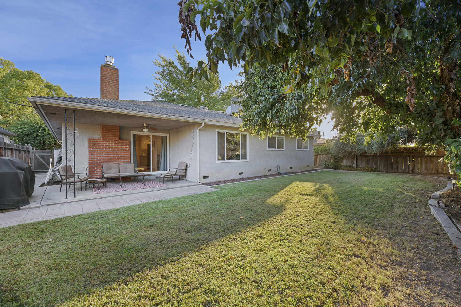 The house has a spacious shaded backyard with plenty of seating area and a BBQ. The backyard is perfect for relaxation and soaking in the sun and to let the kids (or adults) run around in the grass.