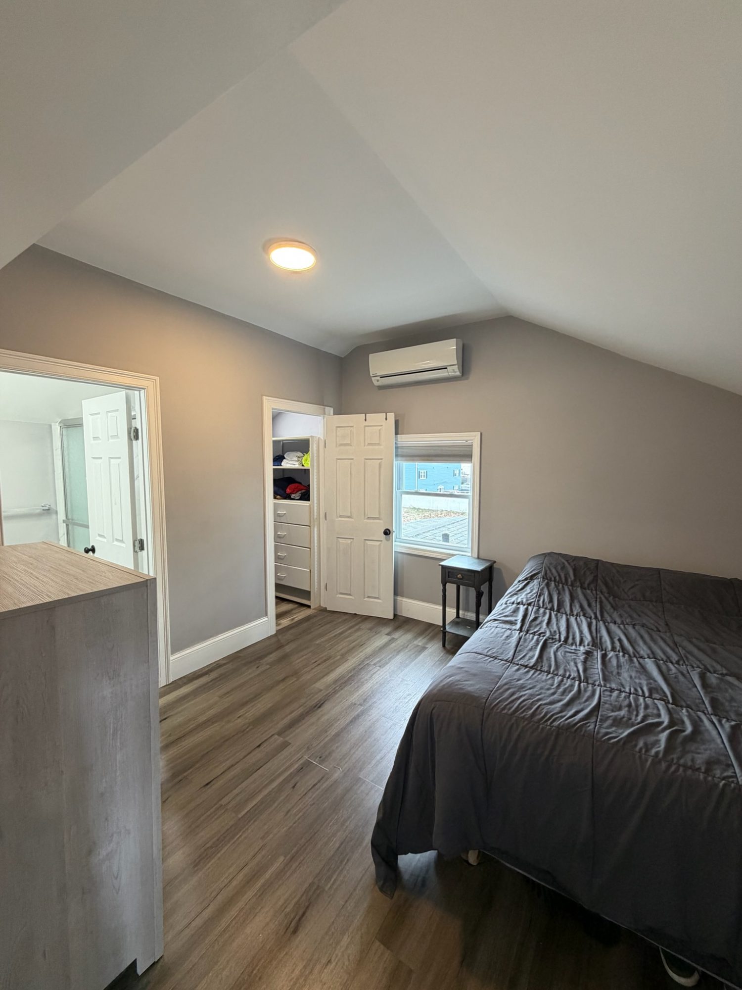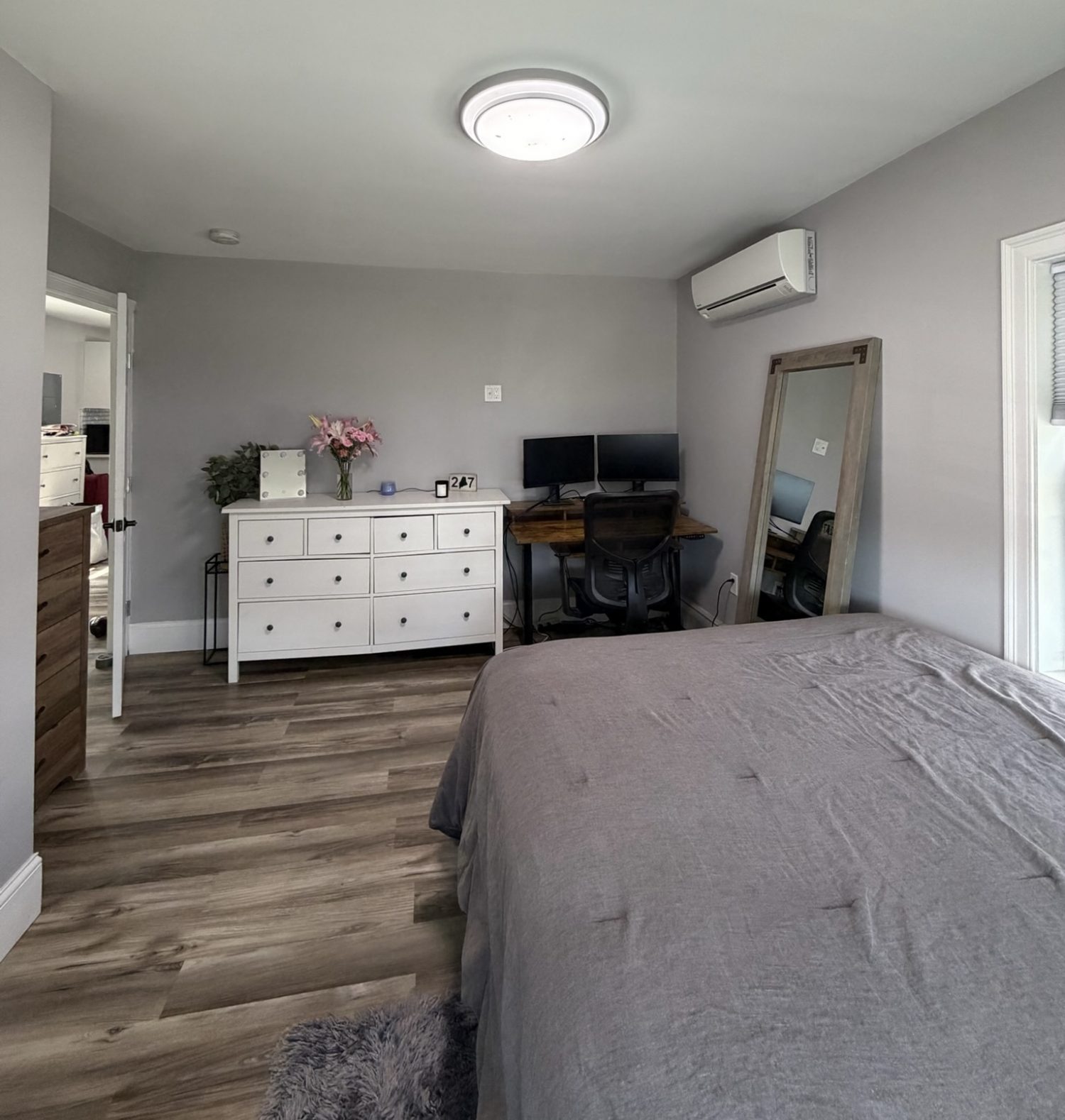 Two off-street parking spots and in-unit laundry. Each bedroom comes with a queen bed and a large built-in closet. Bright open-concept kitchen and living area with updated appliances and space for dining. Each room has its own mini-split heating and air conditioning unit for your comfort.