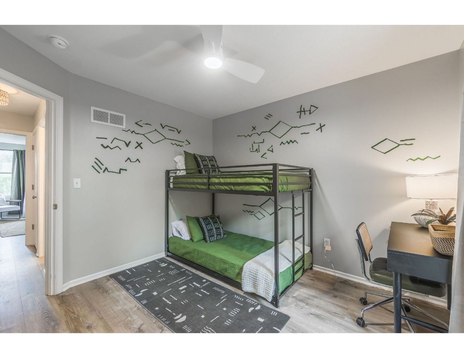 Immerse yourself in the elegance of this home, adorned with stunning designer furnishings and boasting premium amenities throughout. Revel in the seamless flow of plank flooring, the sophistication of Quartz countertops, and the timeless charm of subway tile backsplash. Every detail has been meticulously crafted, from the fresh coat of paint that envelops the interior to the gleaming stainless steel appliances that adorn the kitchen.