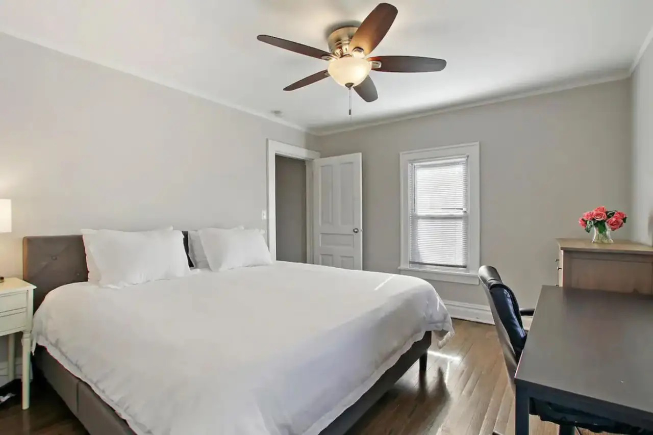 Comfortably sleeps 16. Beautiful 6 bedroom 2 bath home perfect for large groups. Home offers 6 bedrooms and 2 pull out sleeping sofas. 2 Kitchens, 2 Living rooms and washer and dryer. Pets allowed for an additional $25 per day, per pet. Located minutes from Downtown Libertyville.
