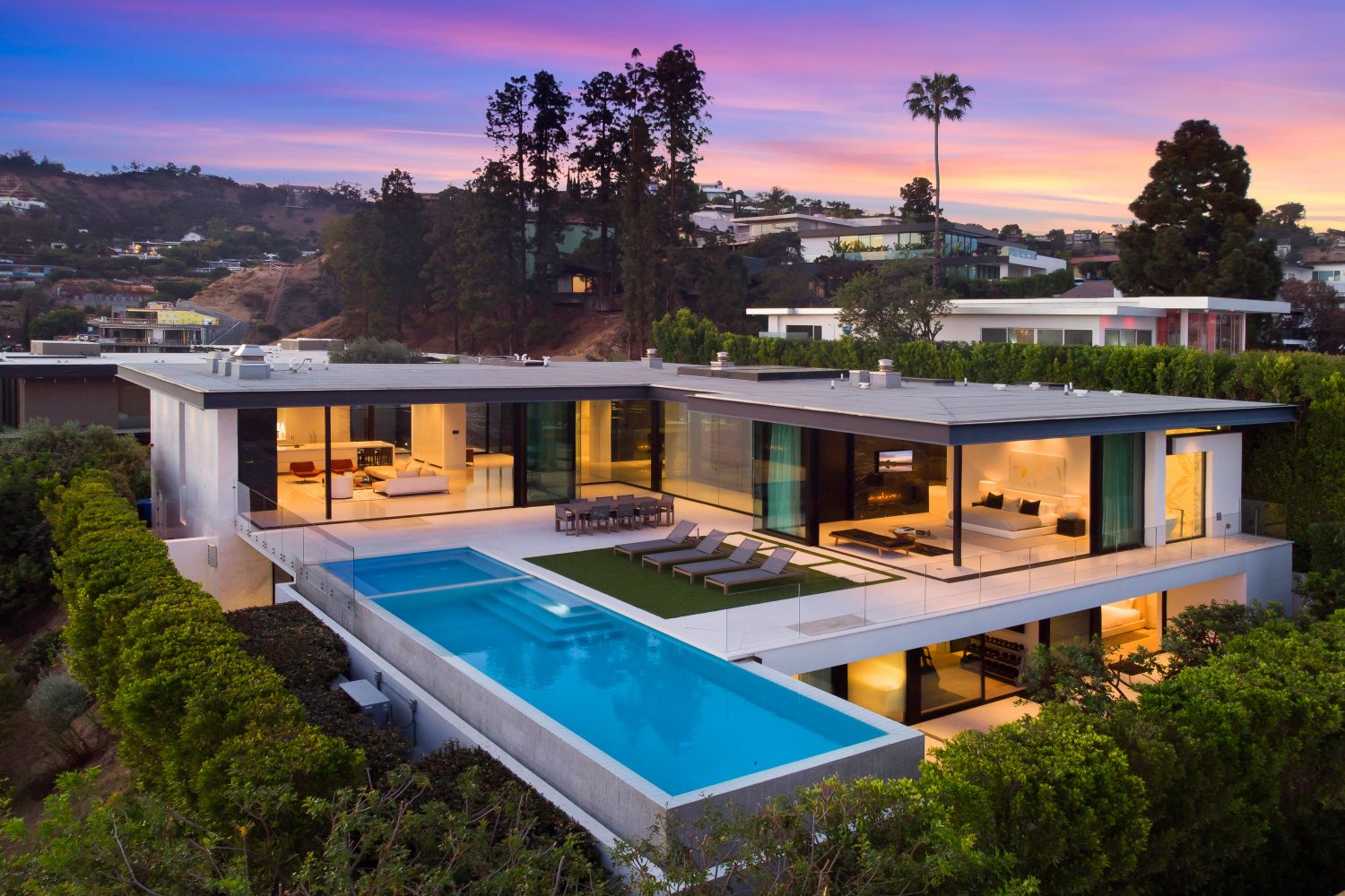 Perched high above the Sunset Strip, this iconic residence on Blue Jay Way offers breathtaking panoramic views stretching from downtown Los Angeles to the Pacific Ocean. A true Hollywood Hills masterpiece, the home is designed to capture natural light and dramatic scenery through expansive walls of glass and seamless indoor-outdoor living spaces.