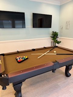 The community is gated and is within a country club. Access is provided to the indoor and outdoor pools, gym, tennis and pickle ball courts, a basketball court, volleyball and a clubhouse where you can eat and drink until 10p. The community includes wonderful walking trails and scenic overlooks, as well as, water activities including kayaking and paddle boarding.