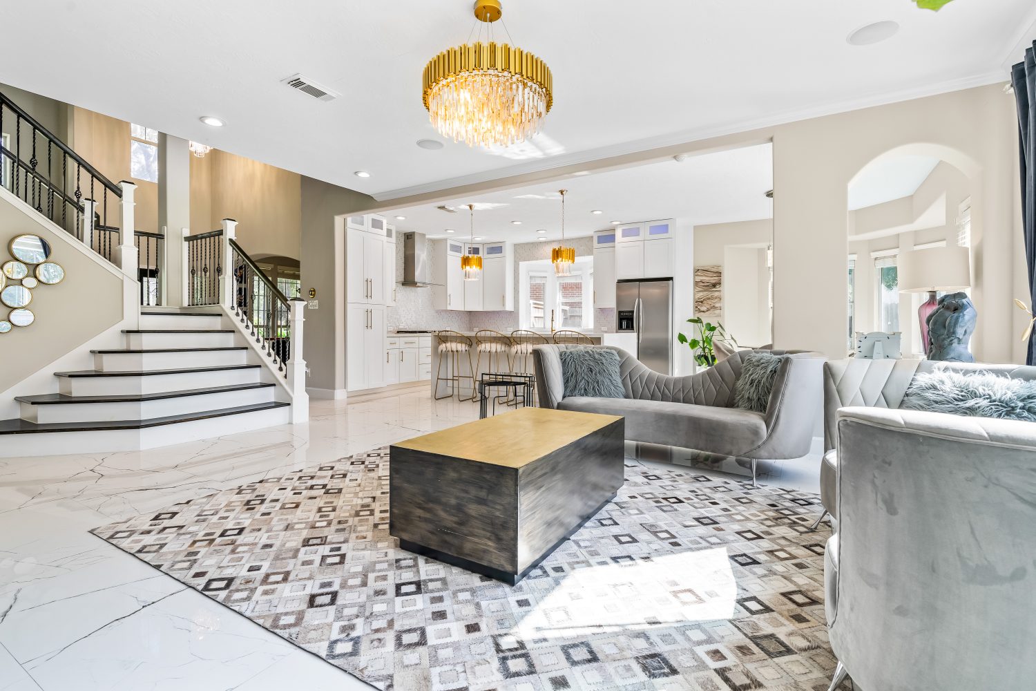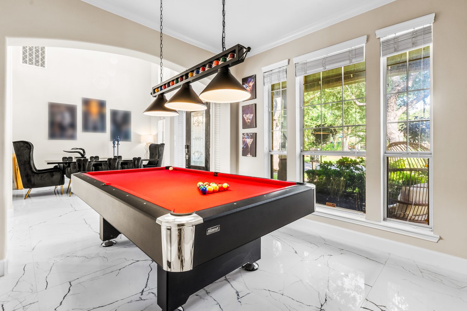 Enjoy a stunning entertainment area featuring a pool table, perfect for fun and gatherings. The modern kitchen is fully equipped and designed for hosting, with a large island that makes it easy and enjoyable to cook and entertain.